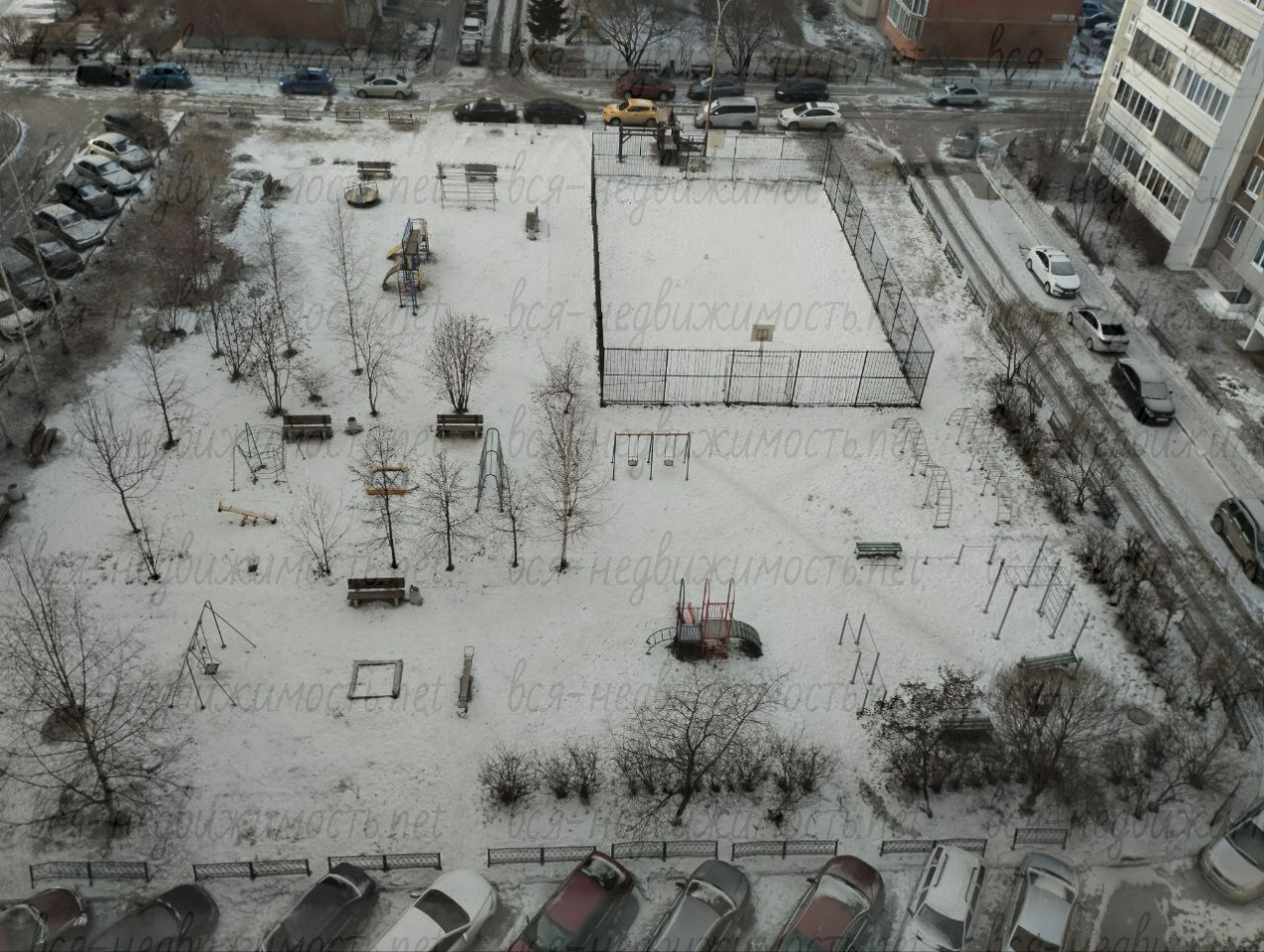 двор с детской площадкой. На открытой парковке всегда можно найти место для автомобиля.