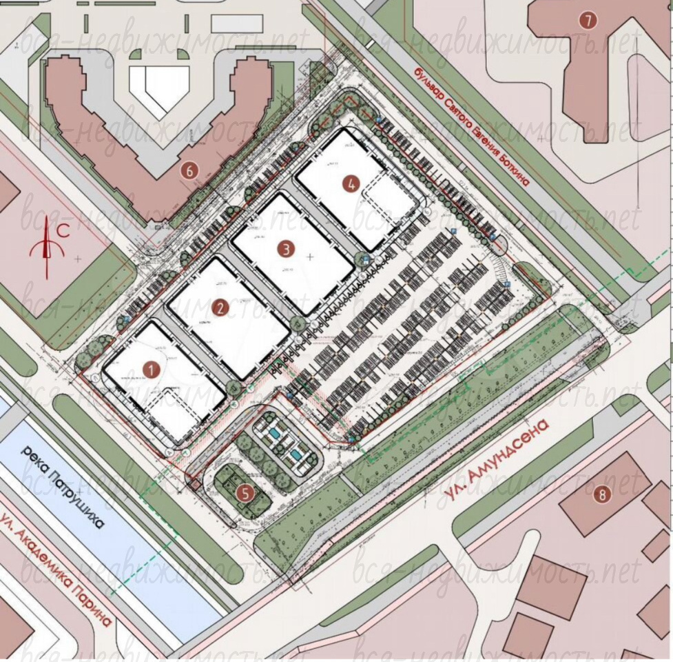 Общая площадь - нарезка от 100 до 5000 кв.м (на фото представлено 4 здания, каждое 1400 кв.м.)