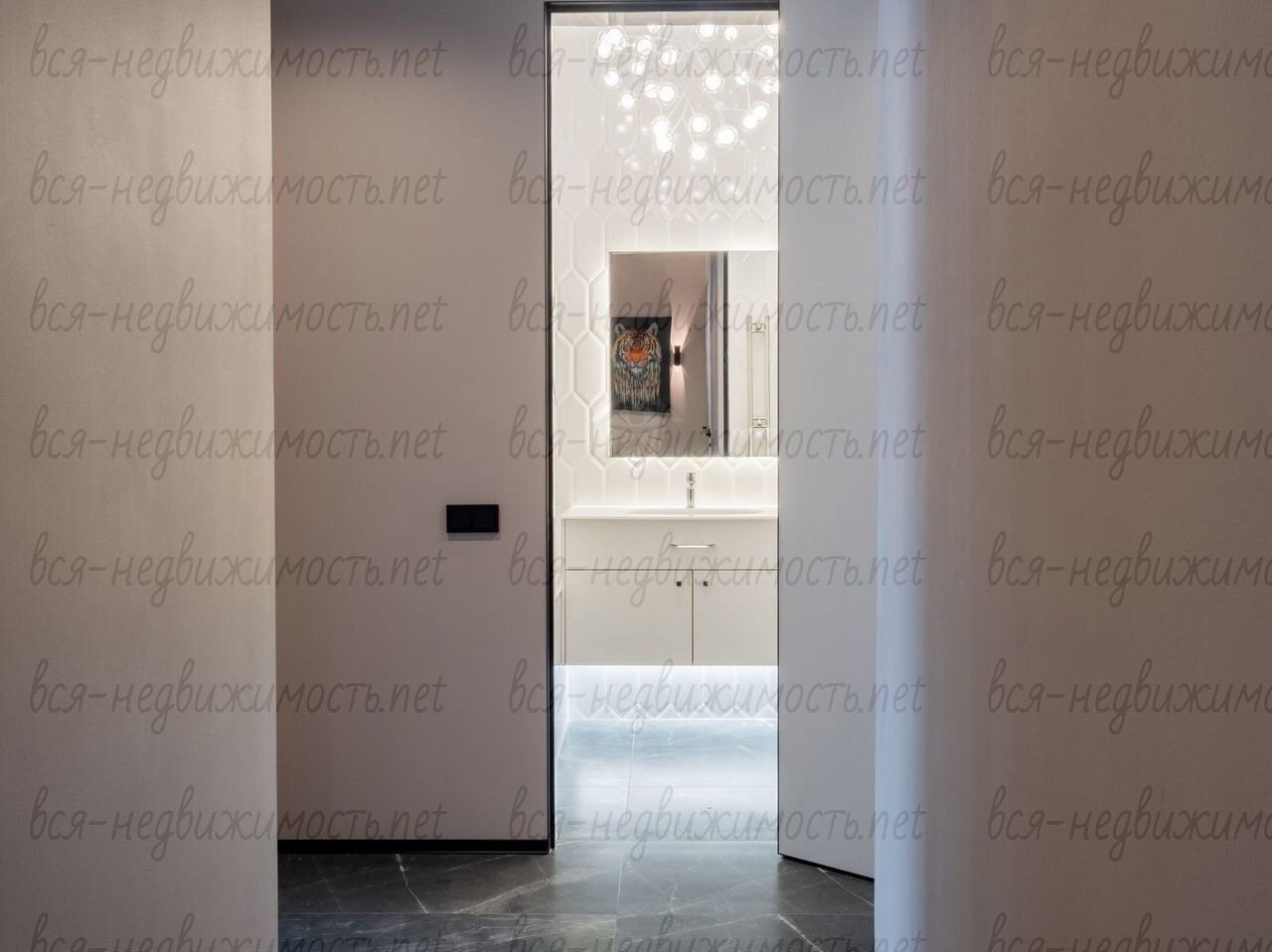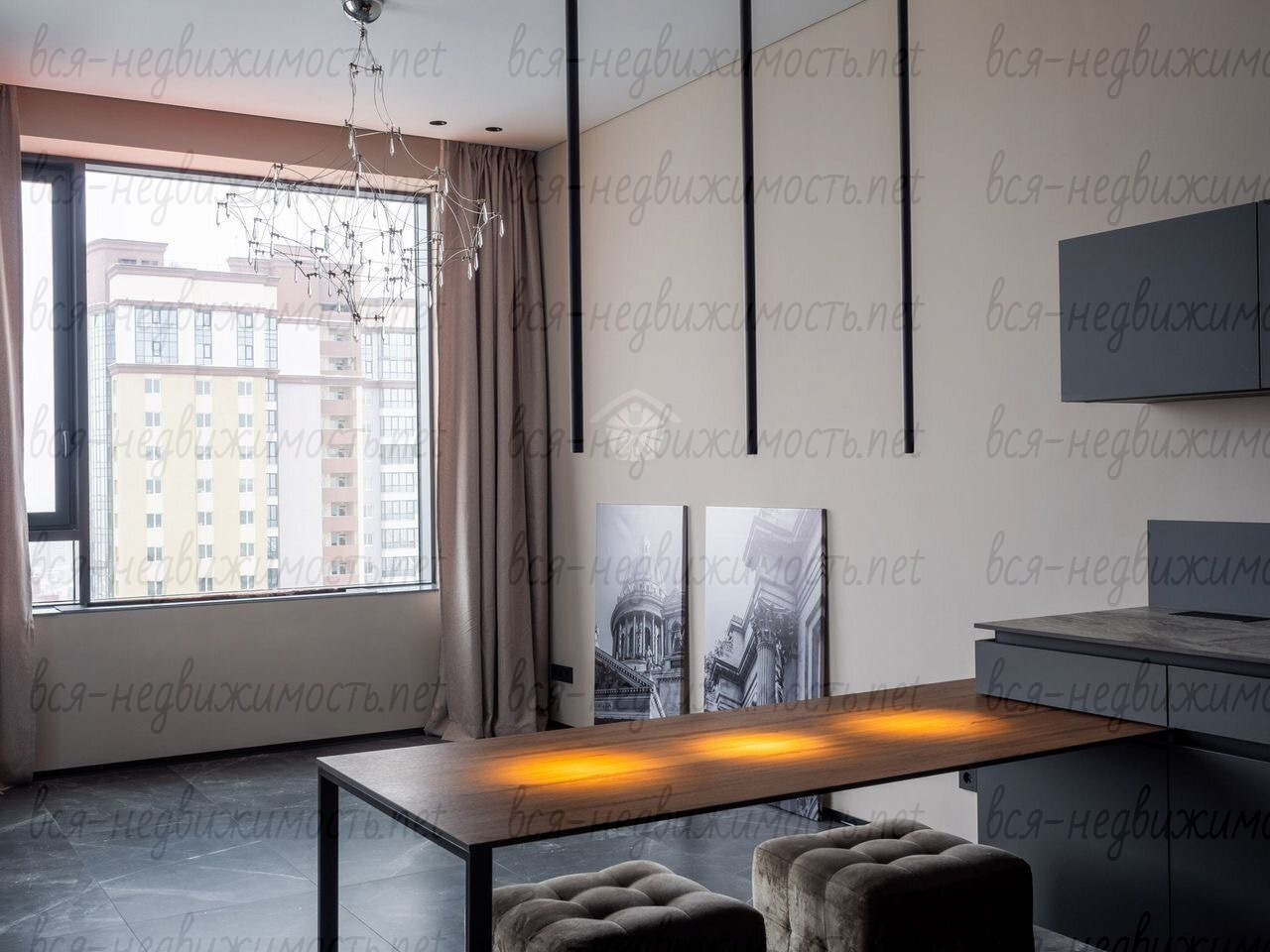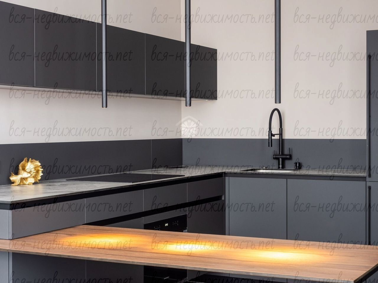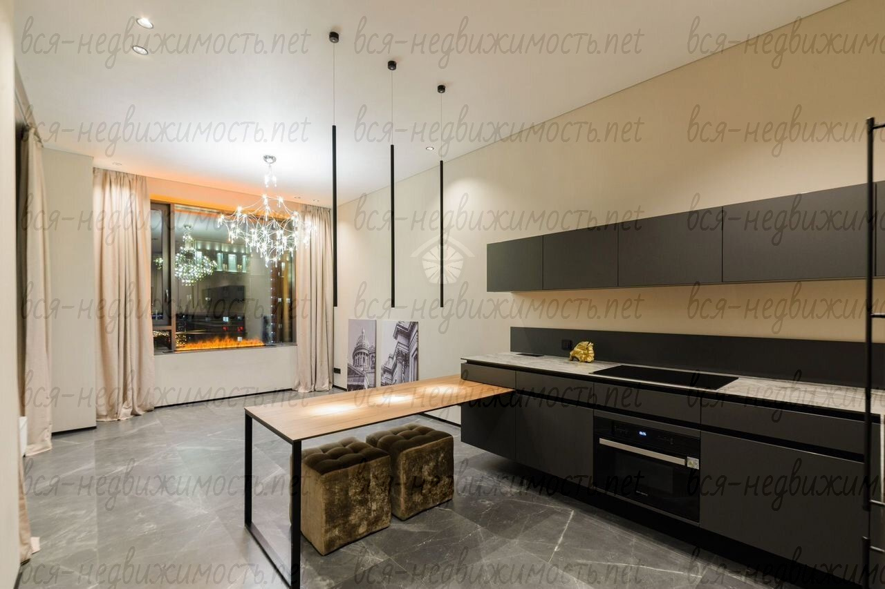 Три отдельных комнаты, просторная кухня-гостиная с камином и высокотехнологичной кухней и дизайнерской люстрой