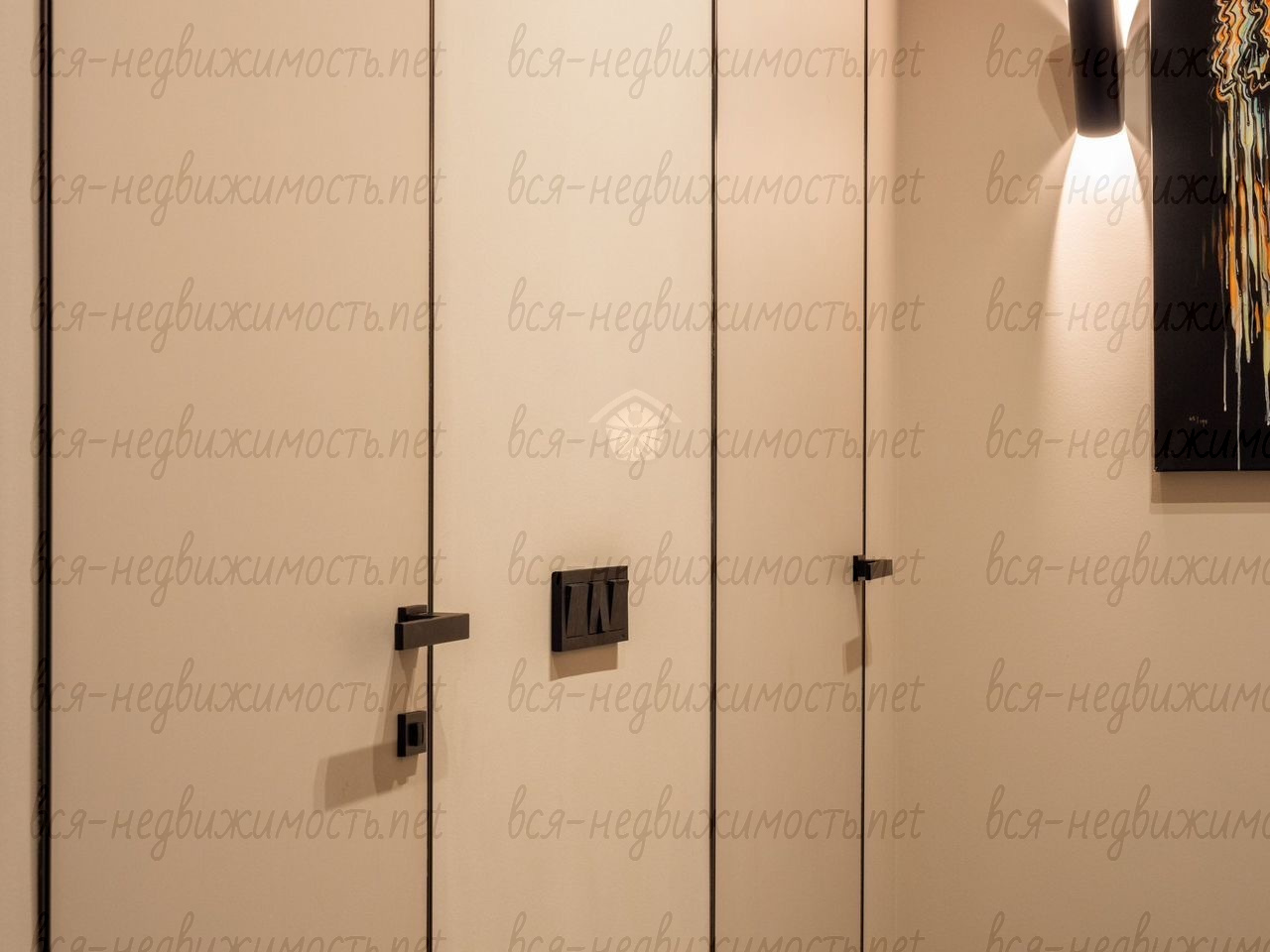 Квартира декорирована картинами , растениями , предметами интерьера.