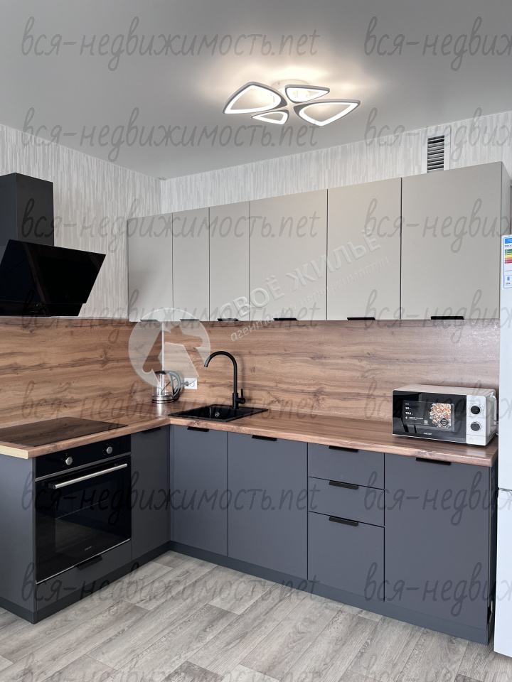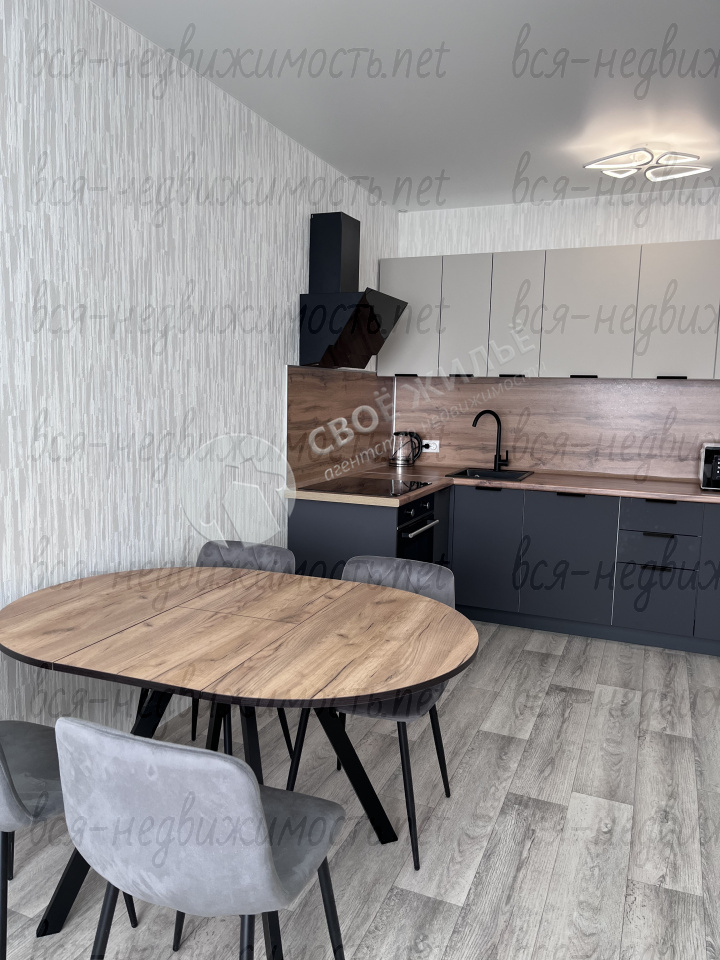Квартира полностью мебелирована и готова к проживанию: качественный кухонный гарнитур с варочной поверхностью, духовым шкафом, посудомоечной машиной, вытяжкой; микроволновка, холодильник, чайник;