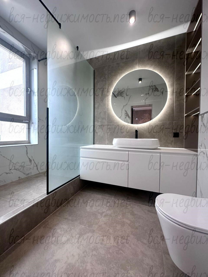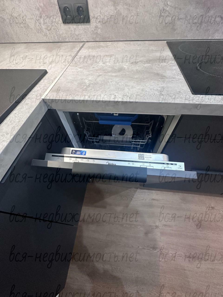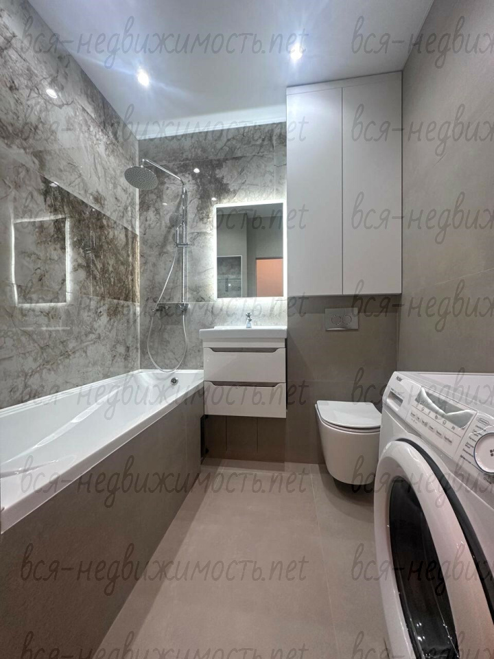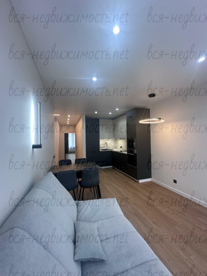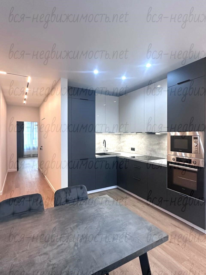 Квартира с дизайнерским ремонтом, вся мебель на заказ, из техники: встроенный холодильник, посудомоечная машина, духовой шкаф, микроволновка, арочная поверхность, вытяжка, стиральная машина.