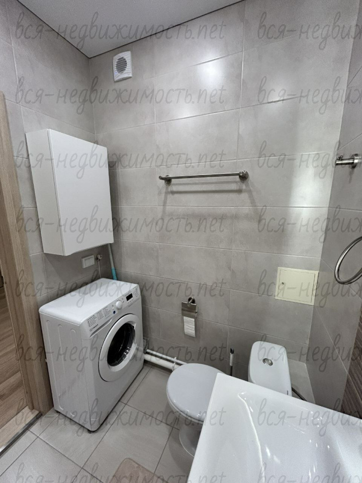 Санузел совмещенный, ванна, стиральная машинка - все подключено и работает.