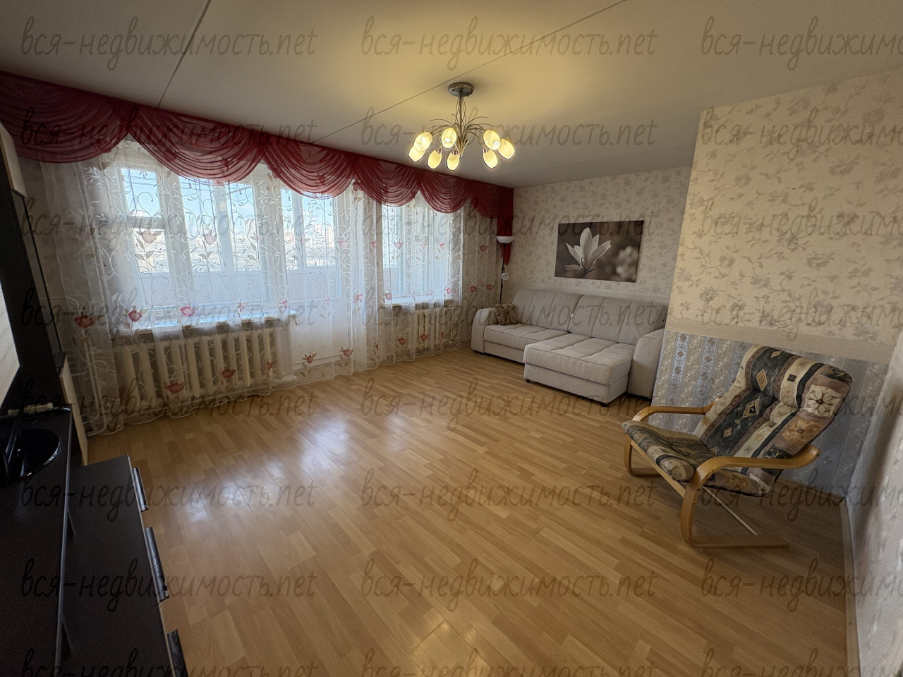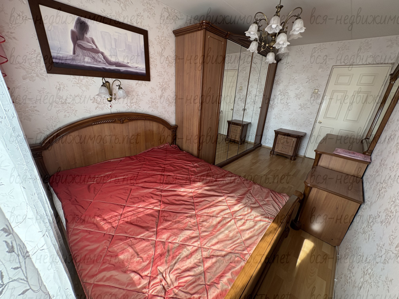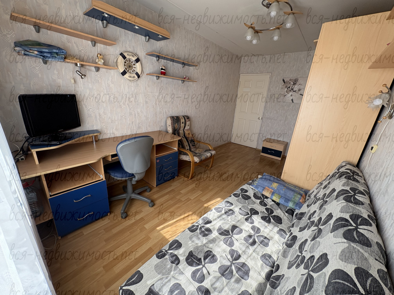 Вся необходимая мебель для проживания (диван, двуспальная и односпальная кровати, шкафы для одежды, столы, шкаф-гардеробная). Санузел совмещенный. Большая лоджия (застеклена).