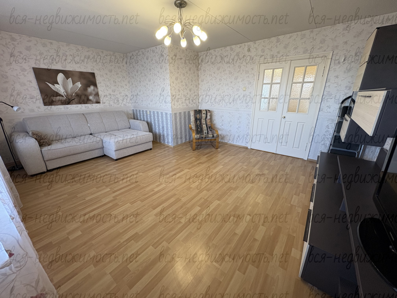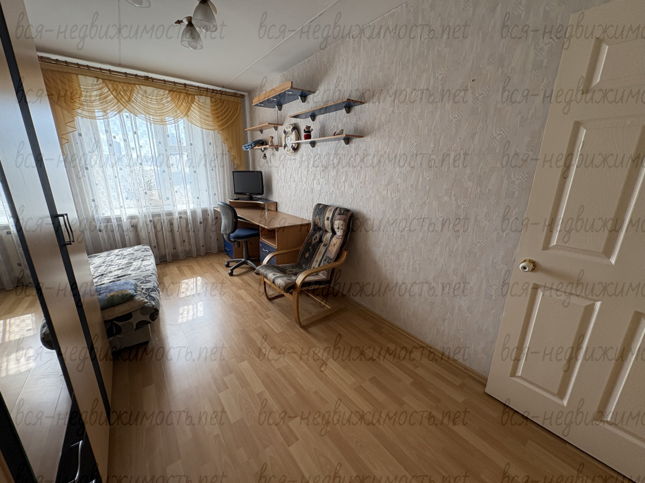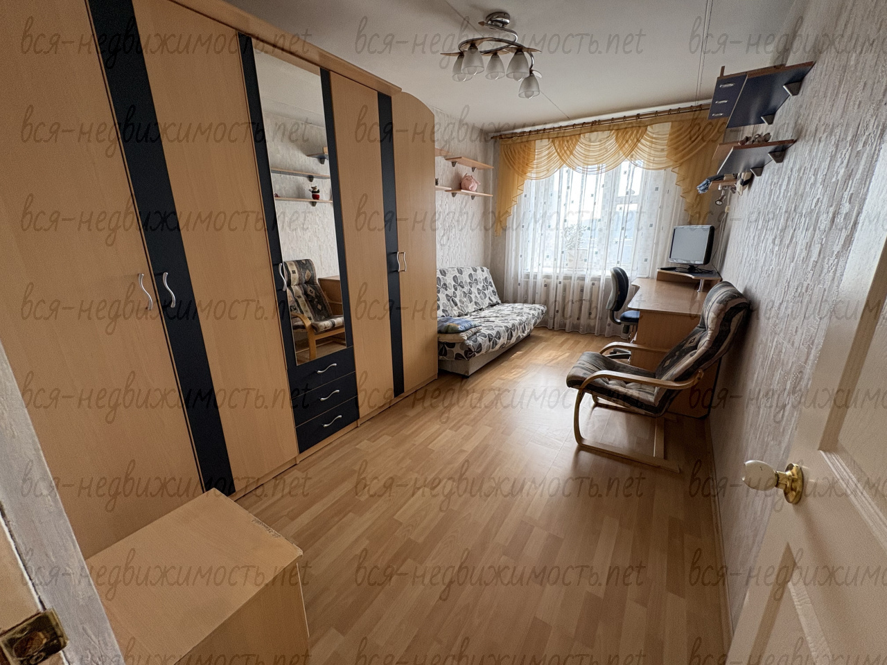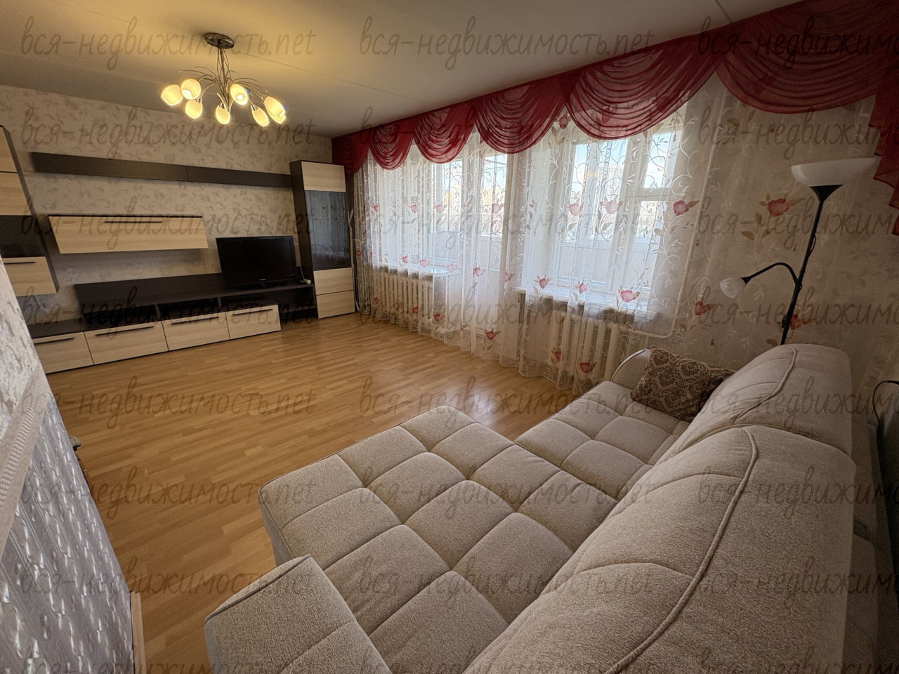 Вся необходимая мебель для проживания (диван, двуспальная и односпальная кровати, шкафы для одежды, столы, шкаф-гардеробная). Санузел совмещенный. Большая лоджия (застеклена).