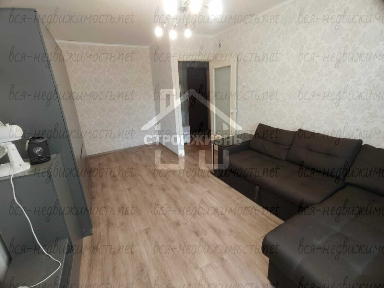 В квартире пол ламинат, удобная вместительная кладовка, балкон есть.