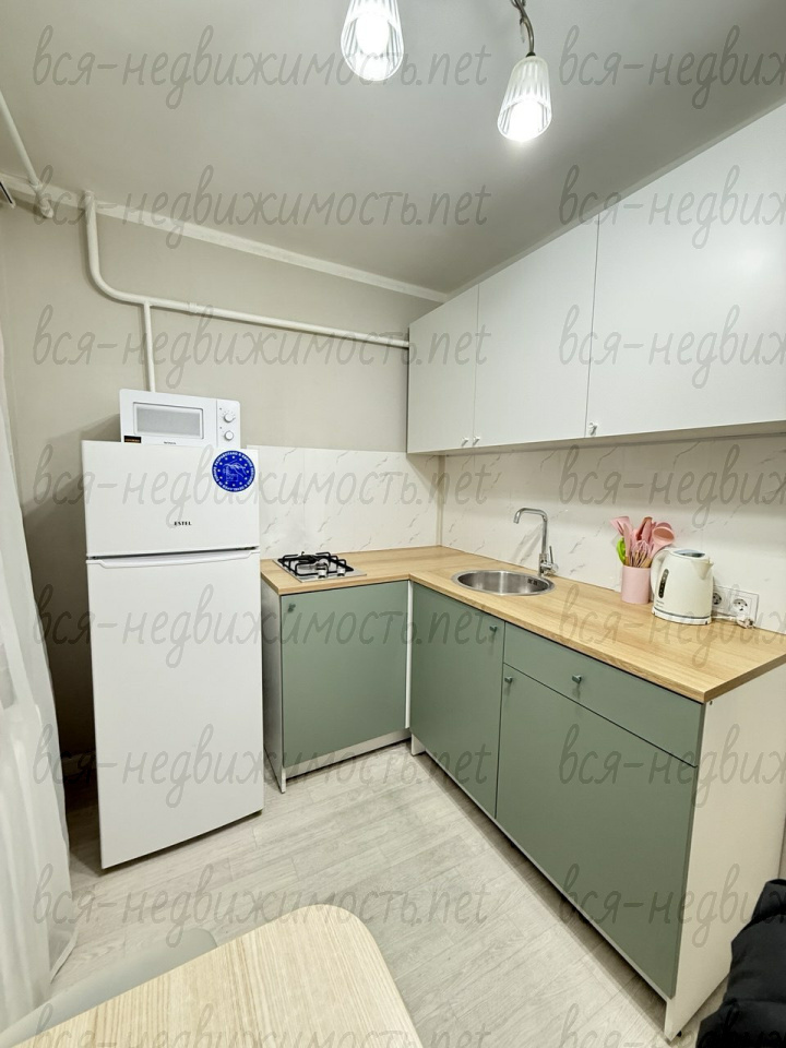 В квартире имеется вся необходимая мебель и техника: кухонный гарнитур с плитой, холодильник, микроволновая печь, чайник, стиральная машина, телевизор, два дивана, шкаф.