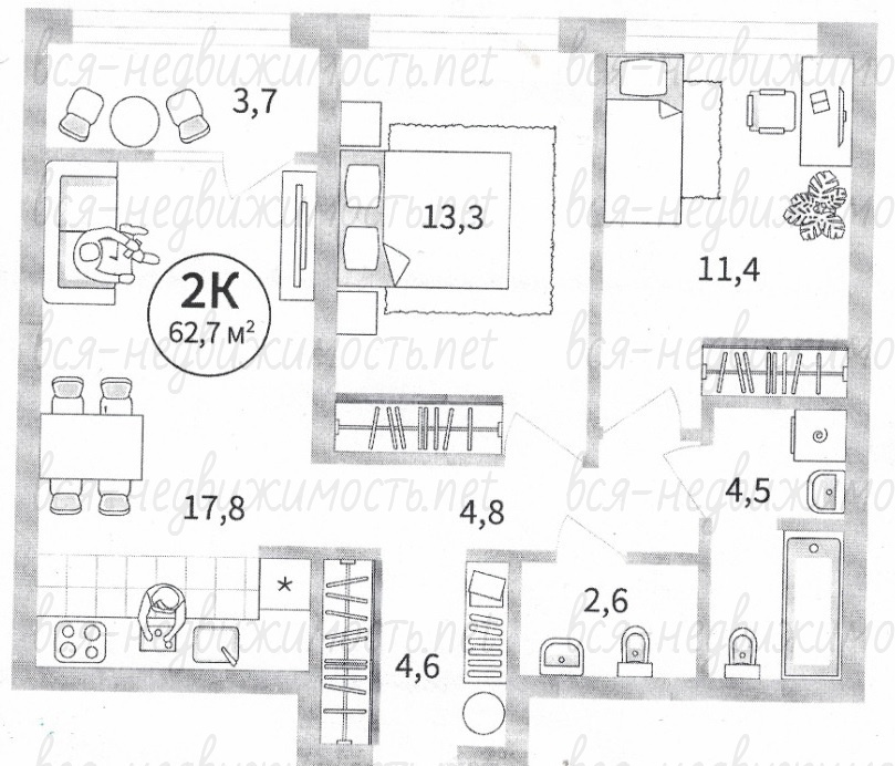| Площадь кухни: | 17 м2 |