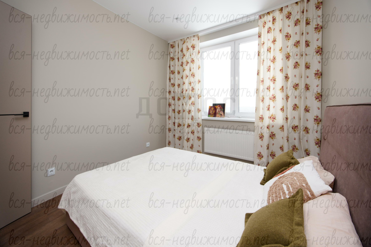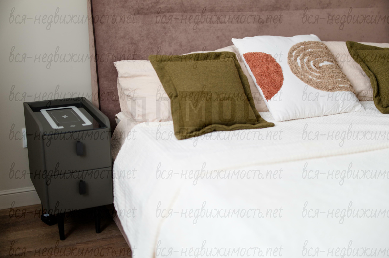 - Спальня:Настоящий оазис спокойствия. Широкая кровать с мягким изголовьем, качественный текстиль и умиротворяющие оттенки штор создают идеальные условия для сна.