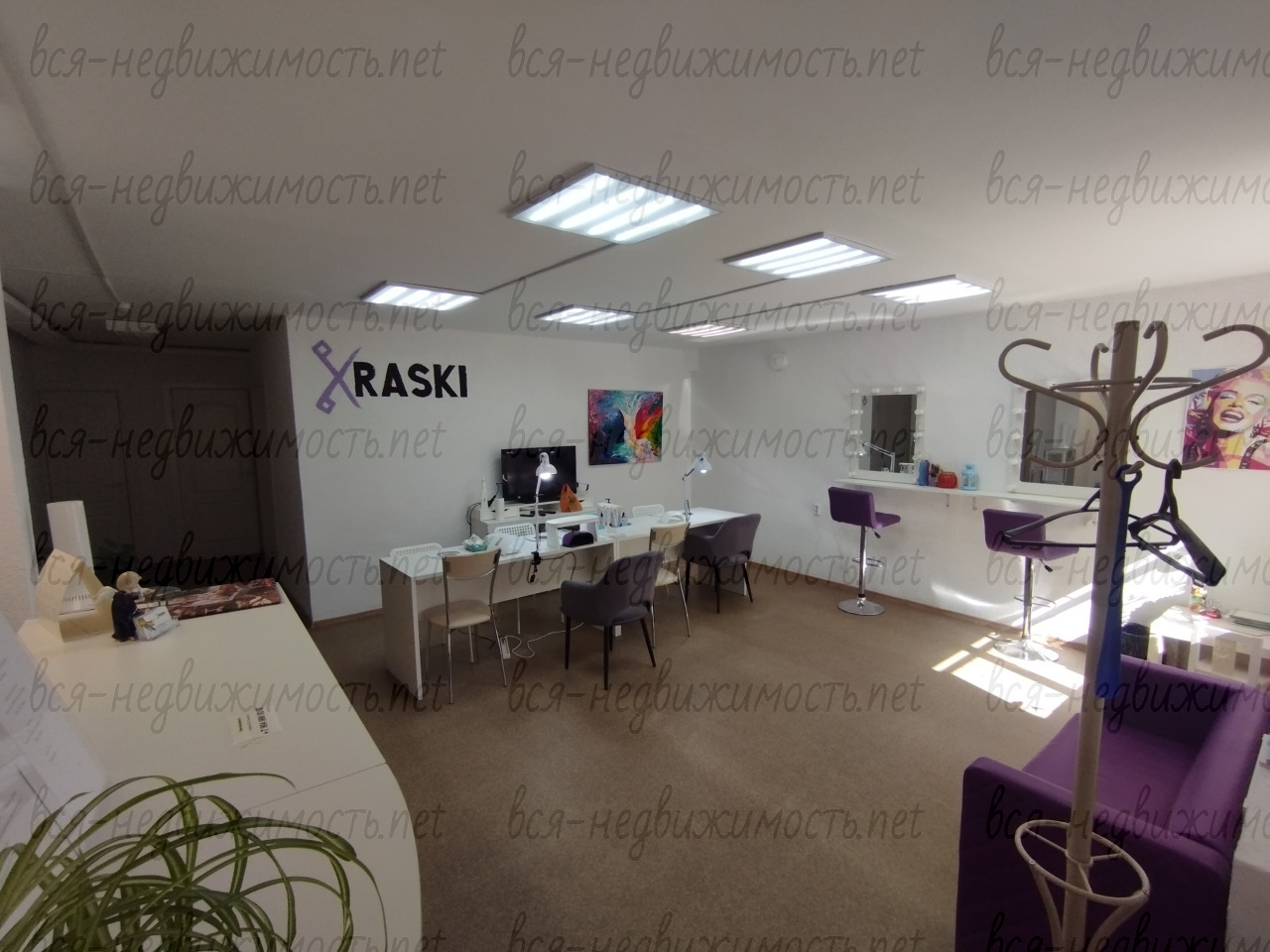 Ремонт сделан под бьюти-услуги: пол - плитка, стены – под покраску, потолок – Армстронг