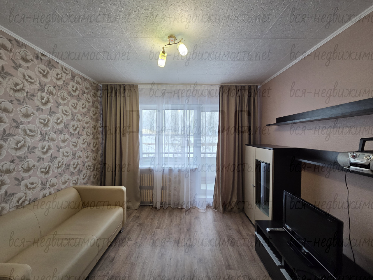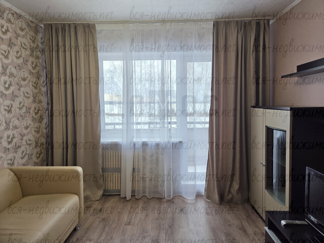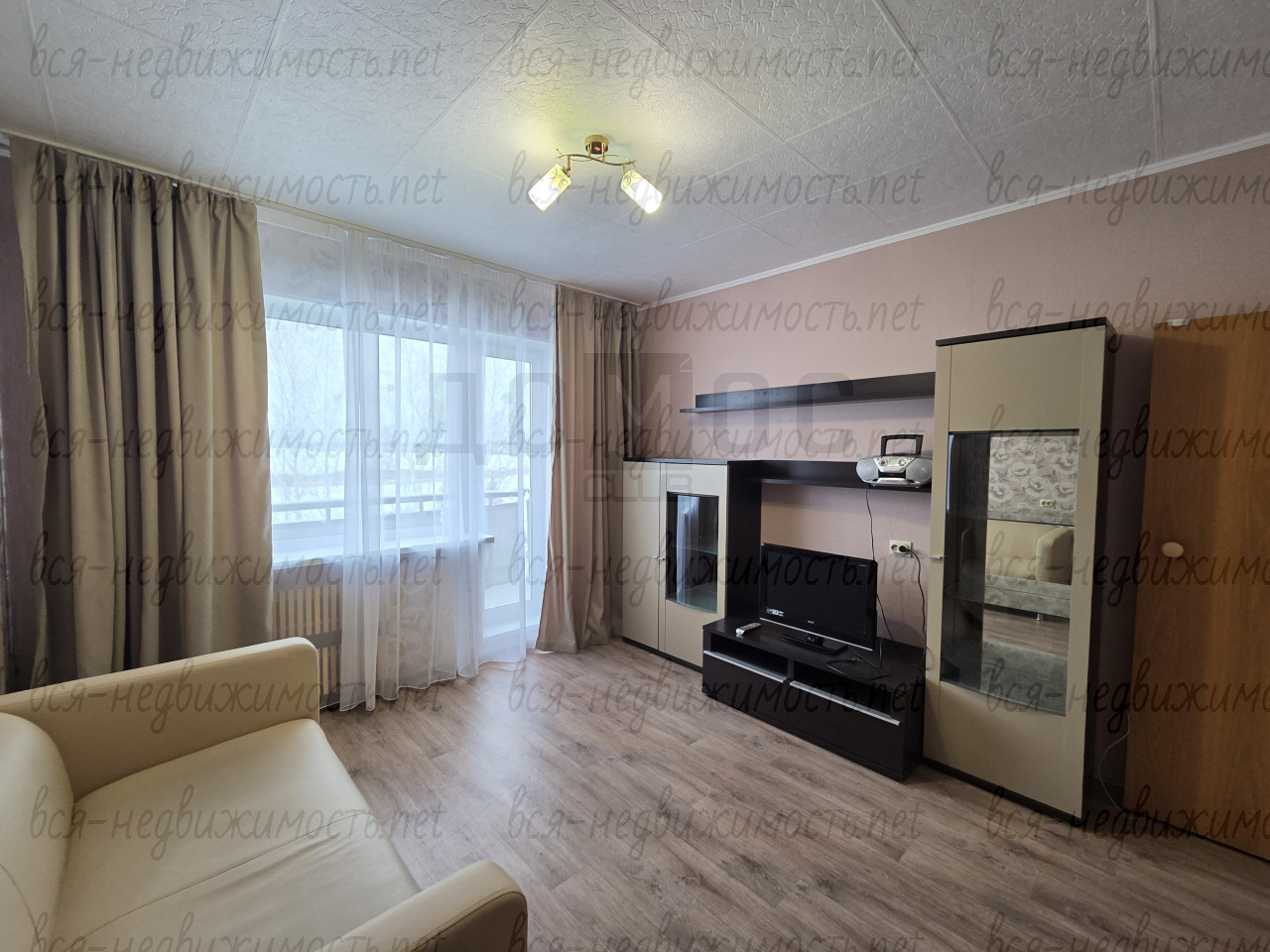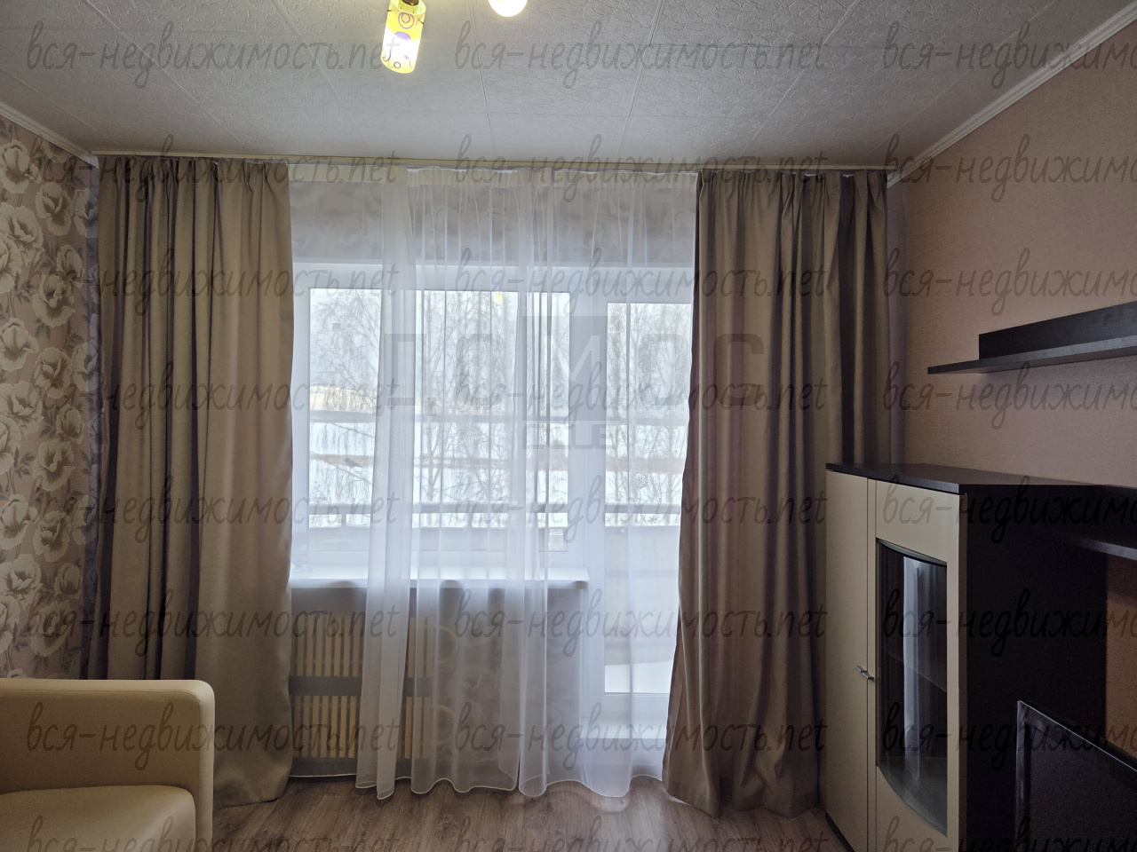 - Полная меблировка: диван, двуспальная кровать, набор шкафов и шкаф-купе.