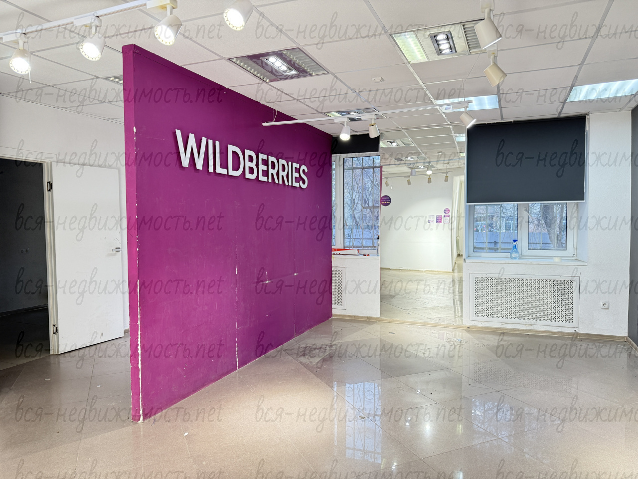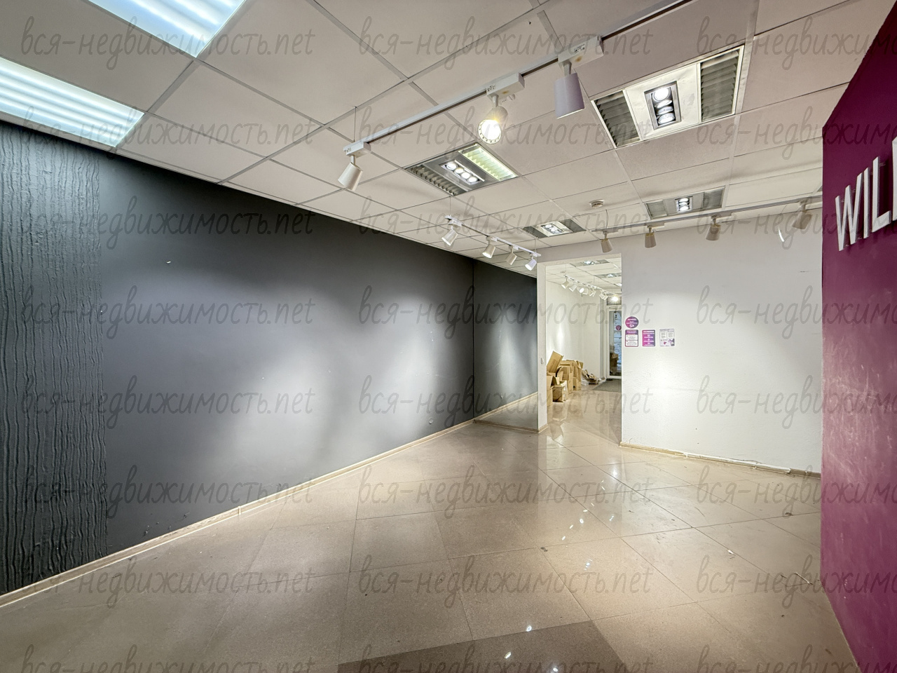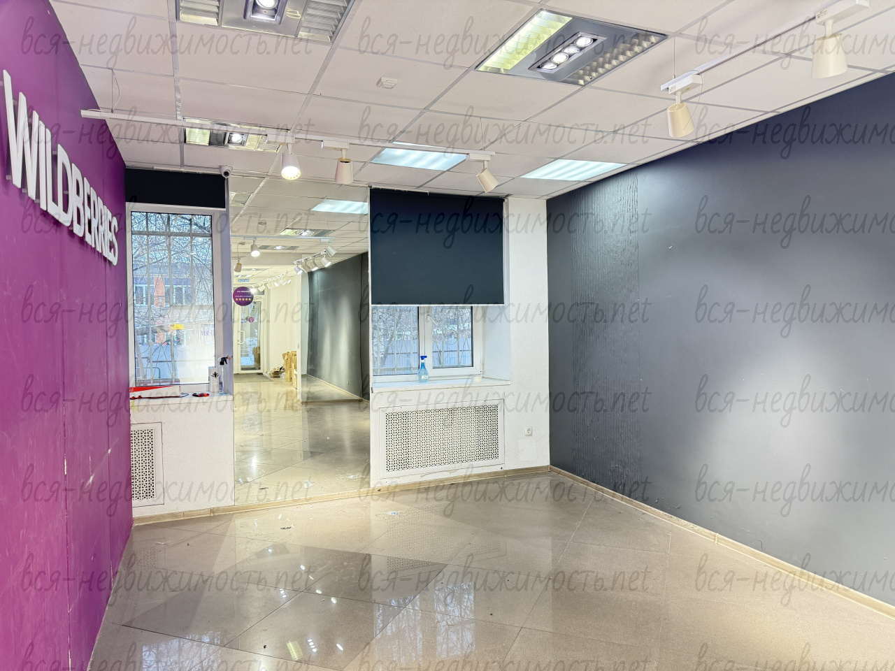 Помещение полностью с отделкой, большой торговый зал + отдельная комната с выходом в оборудованное стеллажами подсобное помещение и сан. узел. Охранная сигнализация.
