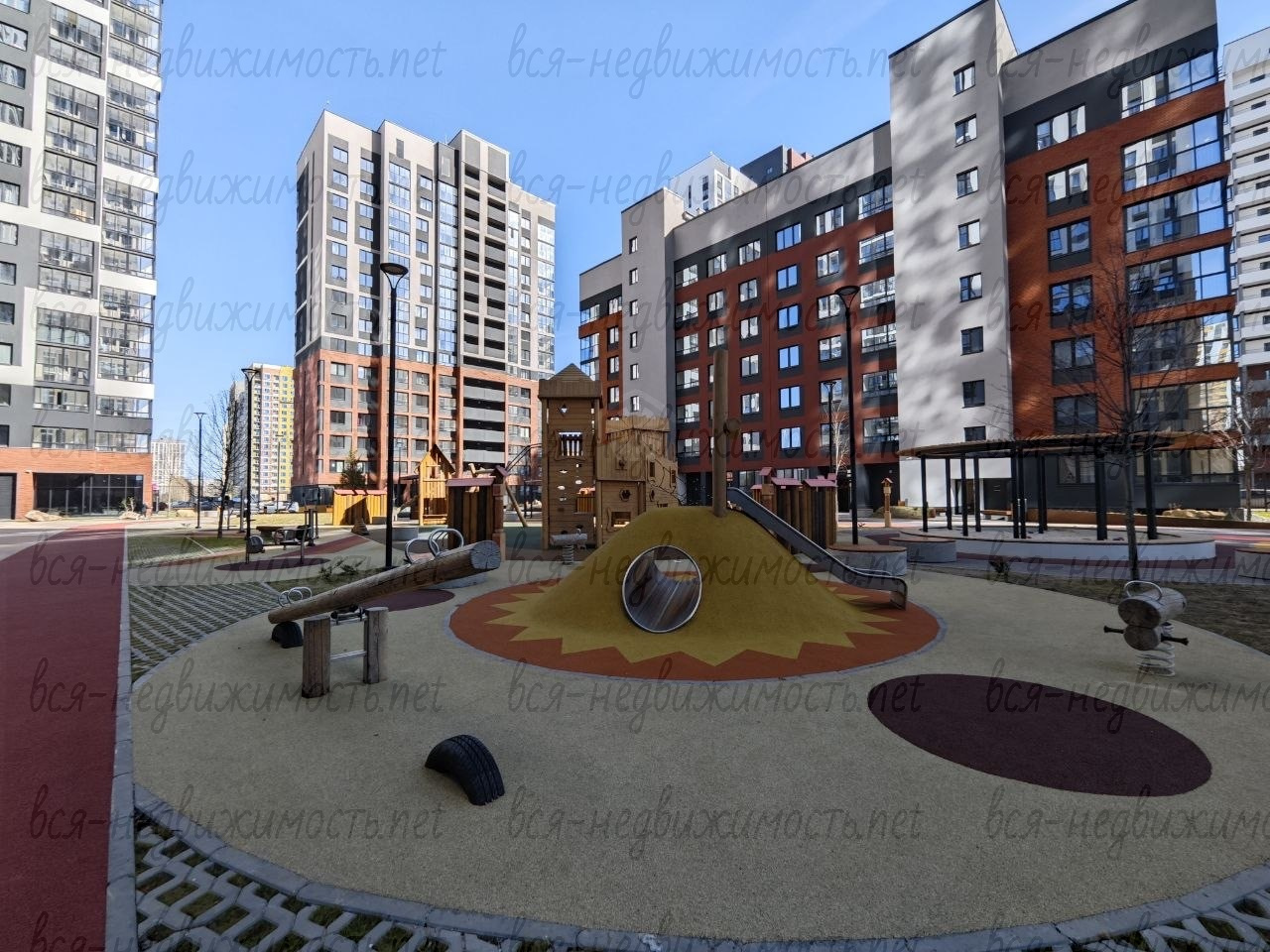 Закрытый двор без машин: Концепция закрытого двора обеспечивает безопасность и спокойствие для жителей, особенно для семей с детьми. Двор оборудован детскими площадками и зонами отдыха, а продуманное озеленение радует глаз с весны до поздней осени.