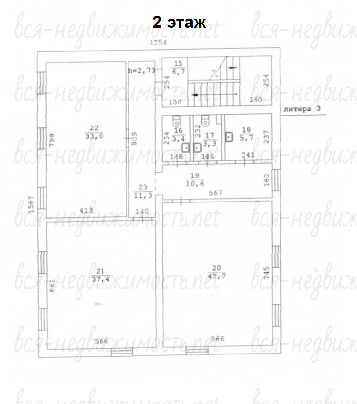 Общая площадь 2 этаж/2 этажей – 154 м2
