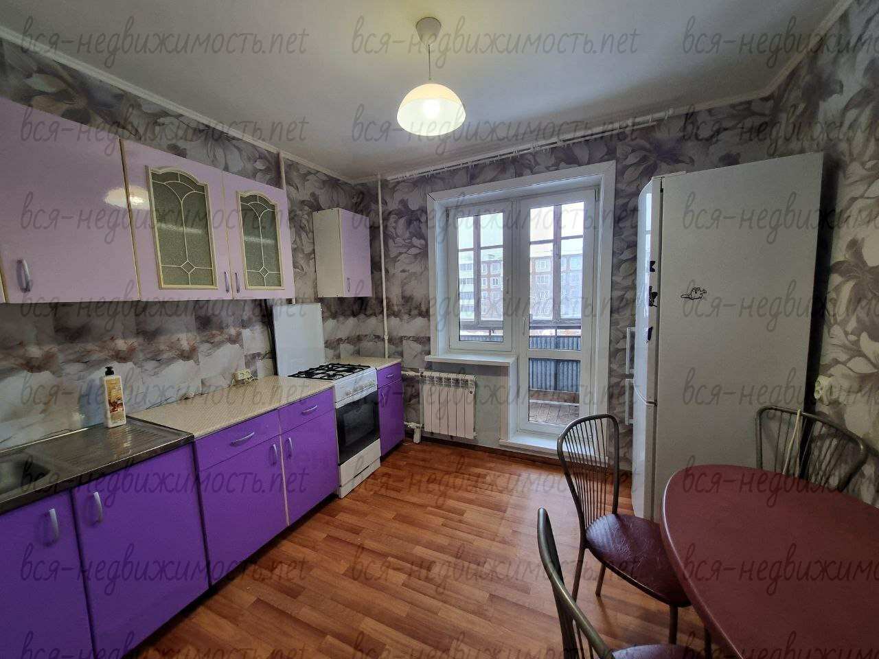Техника: водонагреватель, холодильник, стиральная машина. На кухне удобный обеденный стол для всей семьи, выход на большой балкон так же с кухни. Везде установлены пластиковые окна!