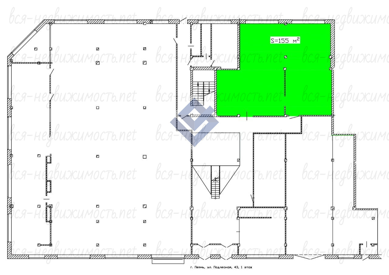 Сдается в аренду торговая (офисная) площадь на 1 этаже 155 м2 в ТЦ "Подлесная, 43" в микрорайоне Парковый.