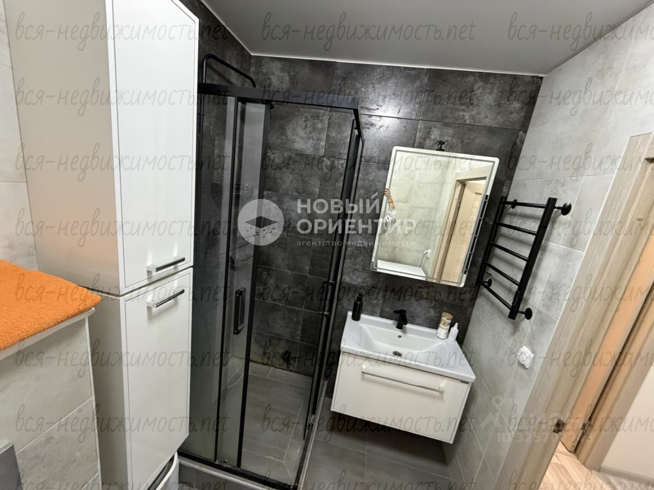В ванной комнатке все удобства на высшем уровне: стиральная машина, парящий унитаз, электросушилка, зеркало с подсветкой.