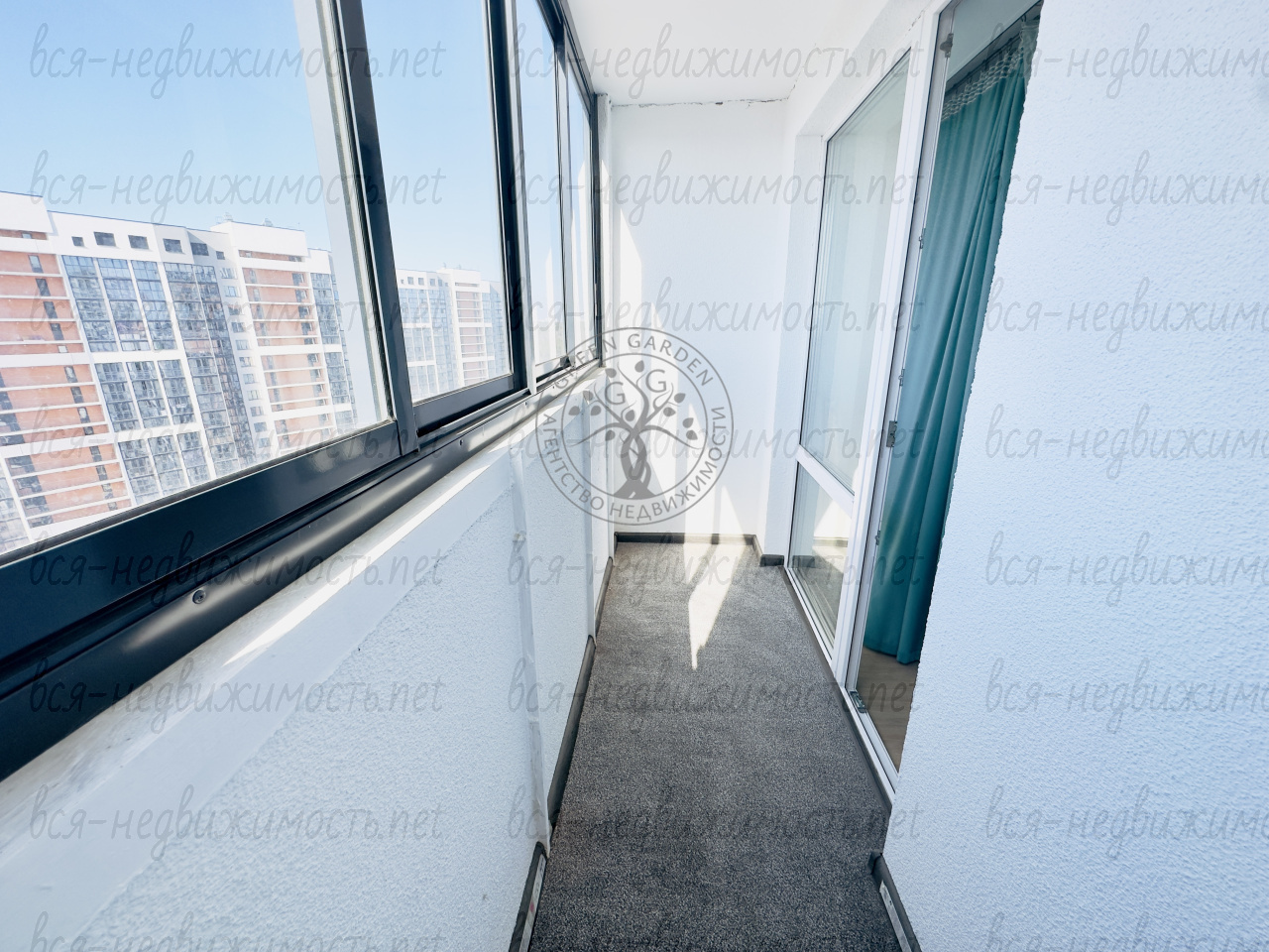 — ? Свое пространство для отдыха: просторная утепленная лоджия с ковровым покрытием и дополнительным местом хранения.