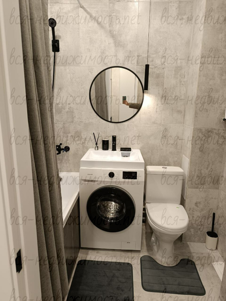 В квартире: шкаф для одежды, 1 диван. Такжe установлена современная бытовая техника, включая холодильник и стиральную машину. Санузел совмещенный, оформлен в светлых тонах.вся мебель и техника абсолютно новые!!!