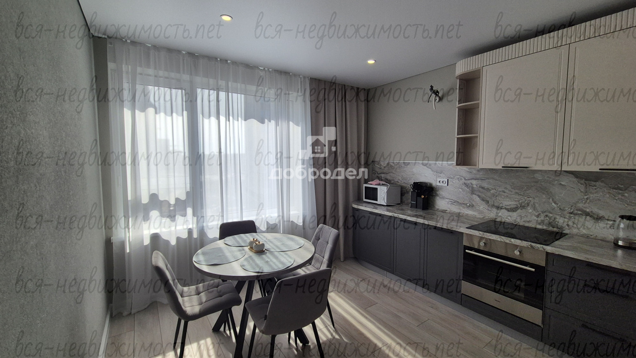Сдаем ШИКАРНУЮ 1-комнатную квартиру 42 кв.м. с ТЕПЛОЙ ЛОДЖИЕЙ! Дом новый – ЖК «А+» ! Ремонт новый (никто не жил) - использованы самые современные качественные стройматериалы !!! Мебель вся новая!!! Есть ВСЁ для комфортного проживания: в спальне кровать, телевизор (есть огромная ниша и можете установить свой шкаф), из спальни выход на лоджию – окна в пол, на кухне: кухонный гарнитур, обеденная зона: столик + стулья, холодильник, индукционная плита, духовой шкаф, микроволновка, чайник. В санузле очень стильный ремонт, современная сантехника, установлена стиральная машинка, зеркало с подсветкой. НА КУХНЕ В МАЕ УСТАНОВИМ КОНДИЦИОНЕР!!! Сейф-дверь со входом не только по ключу, но и по отпечатку пальцев. Квартиру сдаем долгосрочно!!