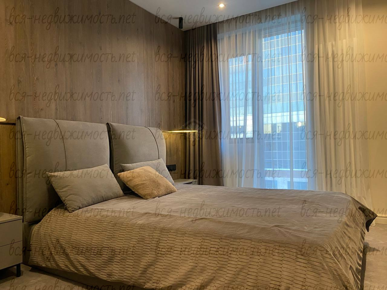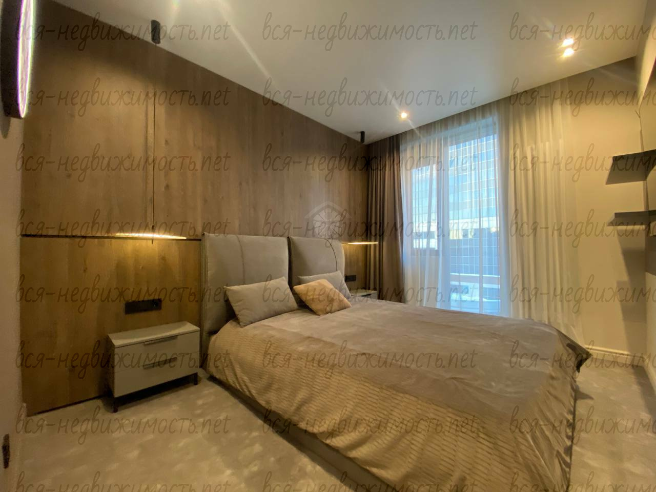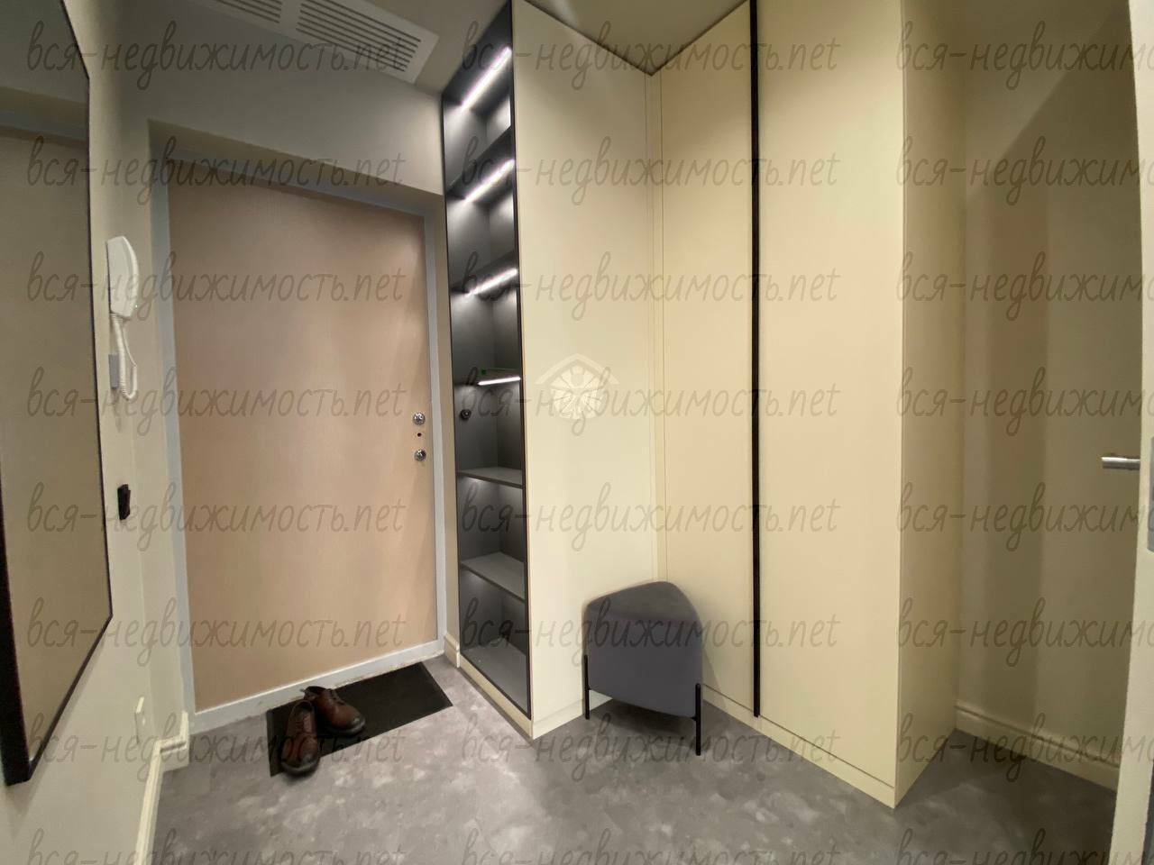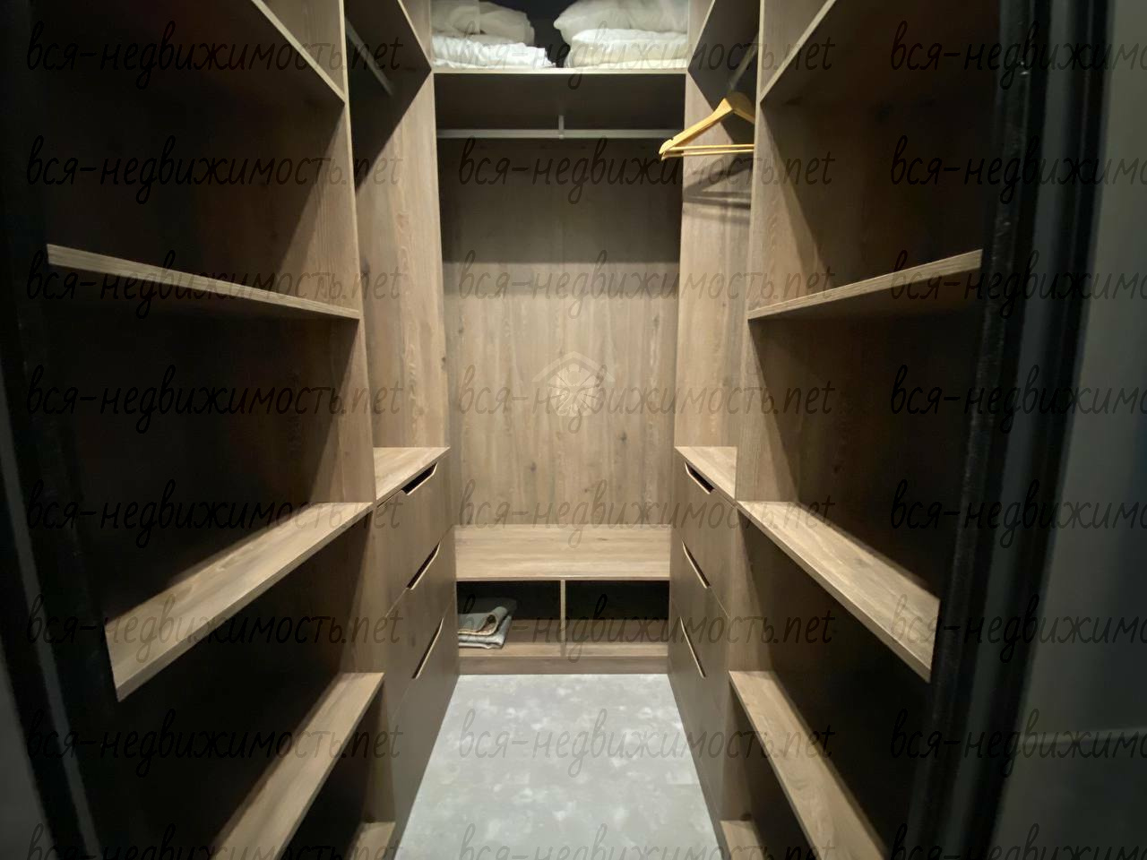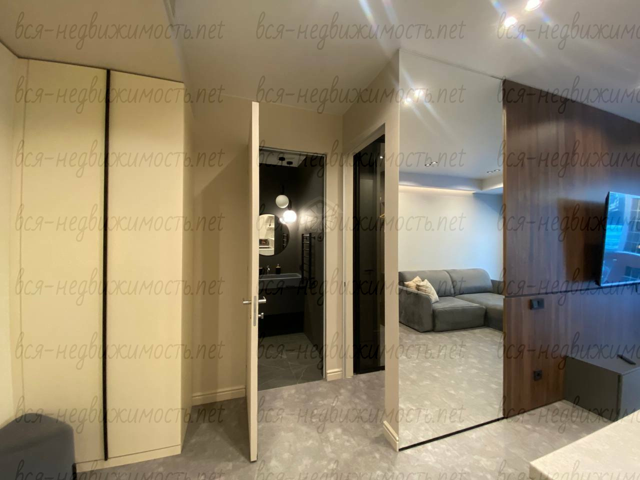 Вся необходимая мебель и техника имеется (холодильник, стиральная машина, плита, вытяжка, кондиционер, телевизор), встроенная кухня, большая система хранения, гардеробная.