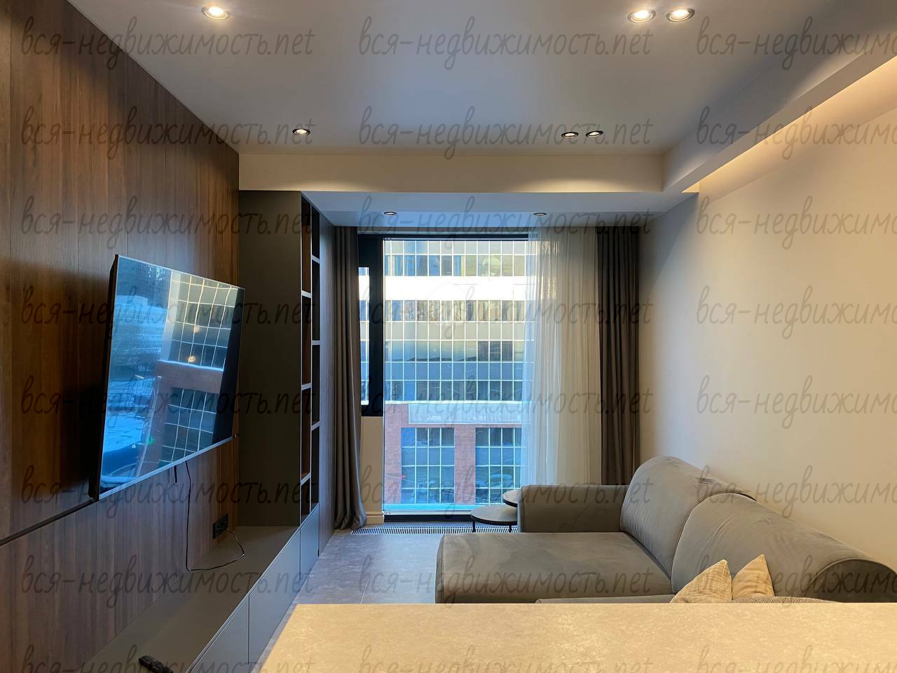 Огромные окна от пола до потолка наполняют пространство светом и открывают прекрасный вид на город. Отличная инсоляция в течение всего дня.