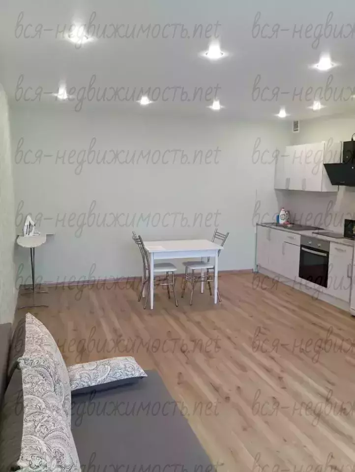 Есть вся техника и мебель, включая кровать, шкаф, кухонный гарнитур.