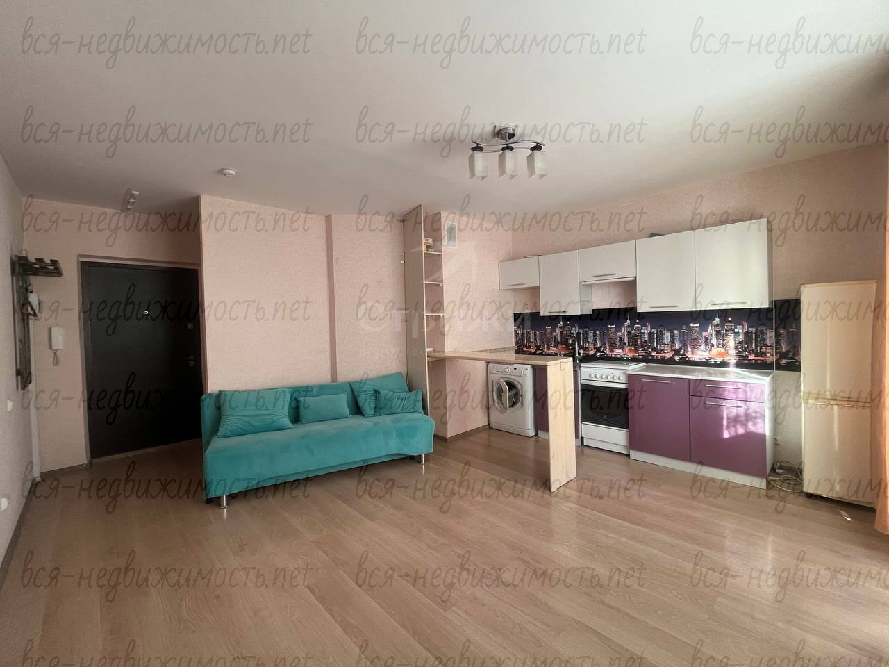 В квартире выполнен косметический ремонт. Просторная комната с выходом на большую застекленную лоджию. Из мебели имеются хорошая кухонный гарнитур с барной стойкой и диван. В студии есть вся необходимая бытовая техника: плита, холодильник и стиральная машина.