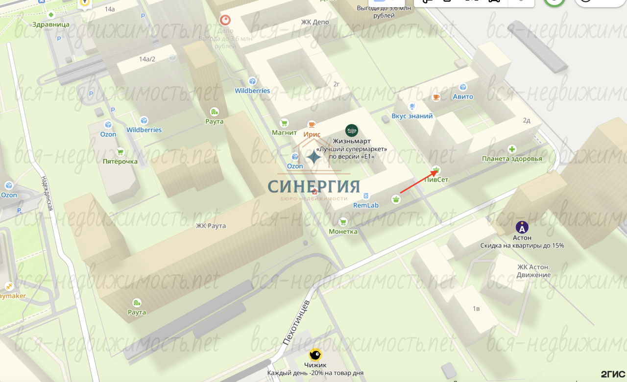 – Расположено в крупном жилом массиве (2649 квартир)