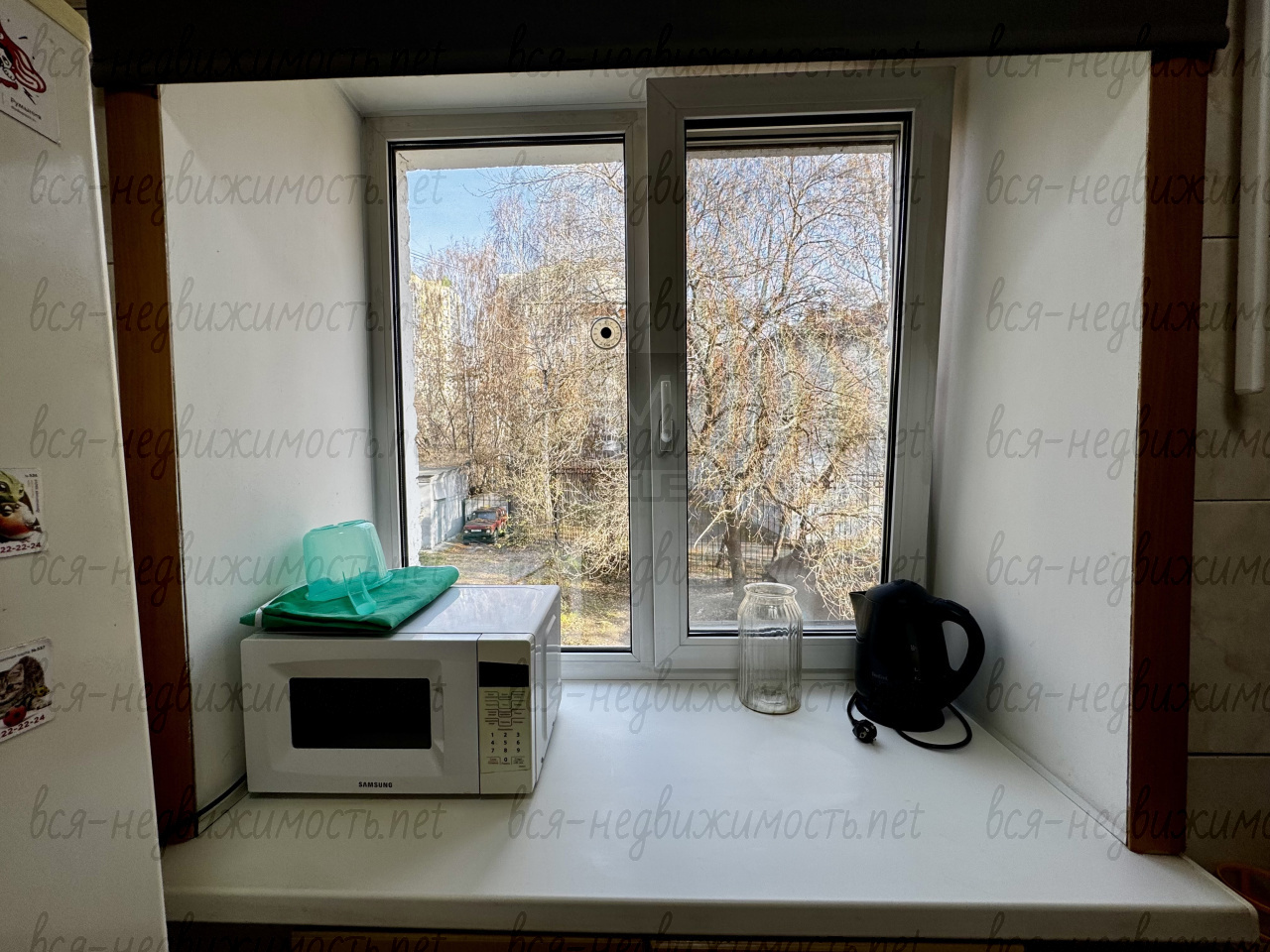 Окна квартиры выходят на тихий двор. В квартире тишина благодаря тому, что окна не на дорогу.