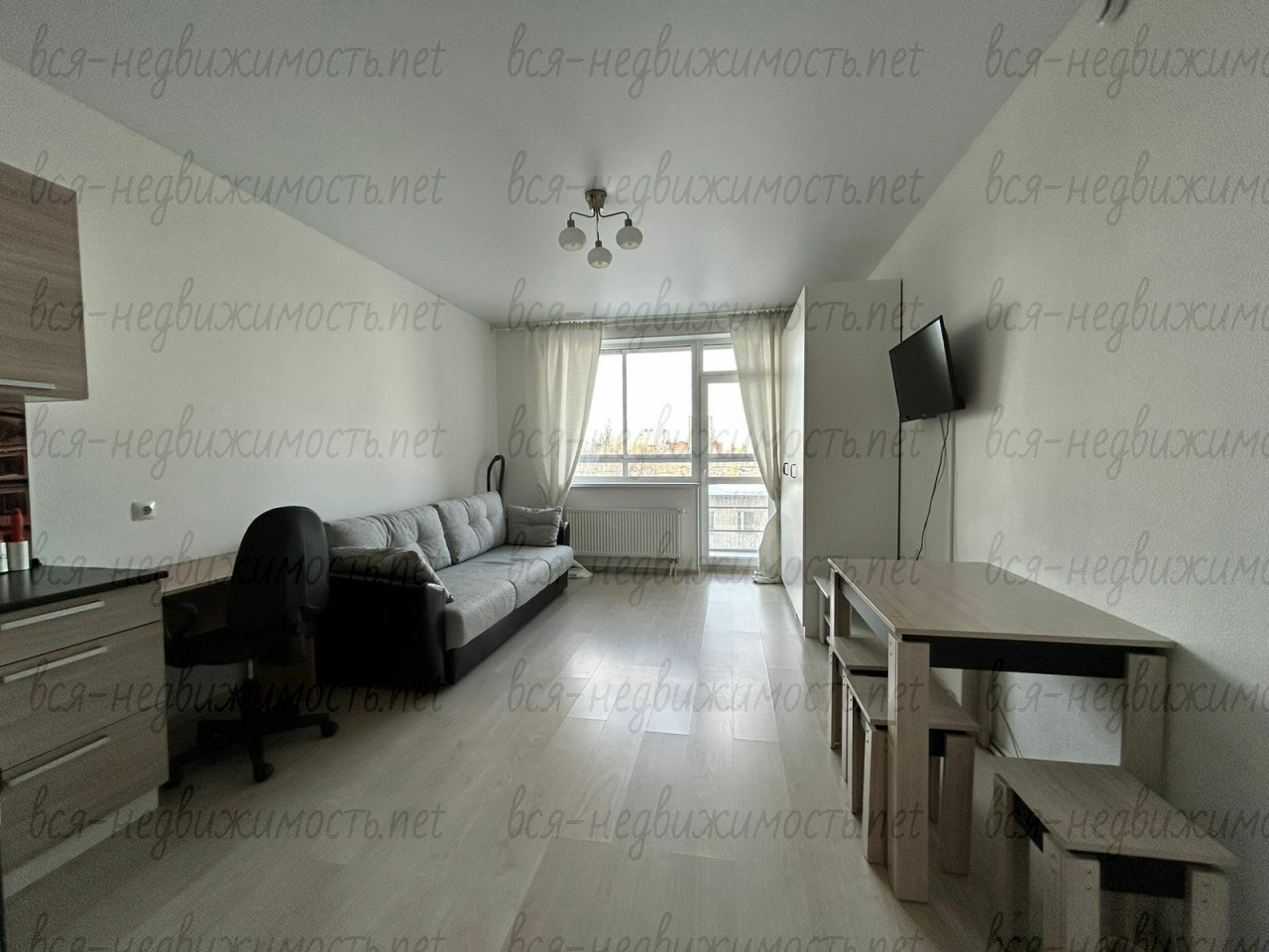 Вся мебель и основная техника для комфортного проживания имеется. Всё как на фото: диван (два спальных места), небольшой компьютерный стол с офисным стулом, обеденный стол с табуретками, большой шкаф, кухонный гарнитур, прихожая. В сан.узле установлена новая ванна. Из техники: холодильник, электроплита с духовкой, вытяжка, стиральная машина, телевизор, пылесос. Отсутствует чайник, микроволновка, посуда.