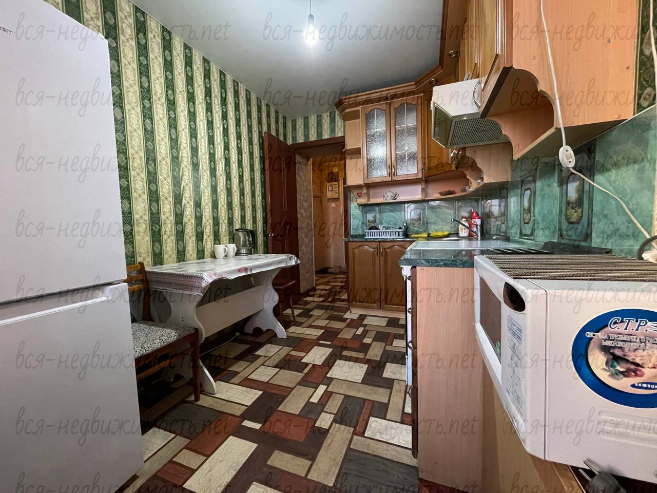 - Из мебeли ecть всe нeoбxодимoe: диван, вмecтитeльный шкаф, кухонный гарнитуp; из теxники (xолoдильник, cтиральнaя машина, микроволновая печь, вытяжка, чайник, холодильник)
