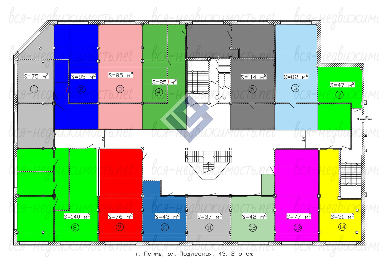 Предлагается к продаже помещение №6 (на схеме этажа) площадью 82 м2 на 2 этаже в
