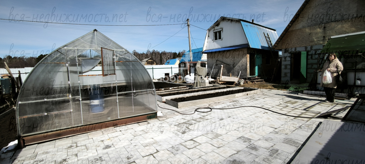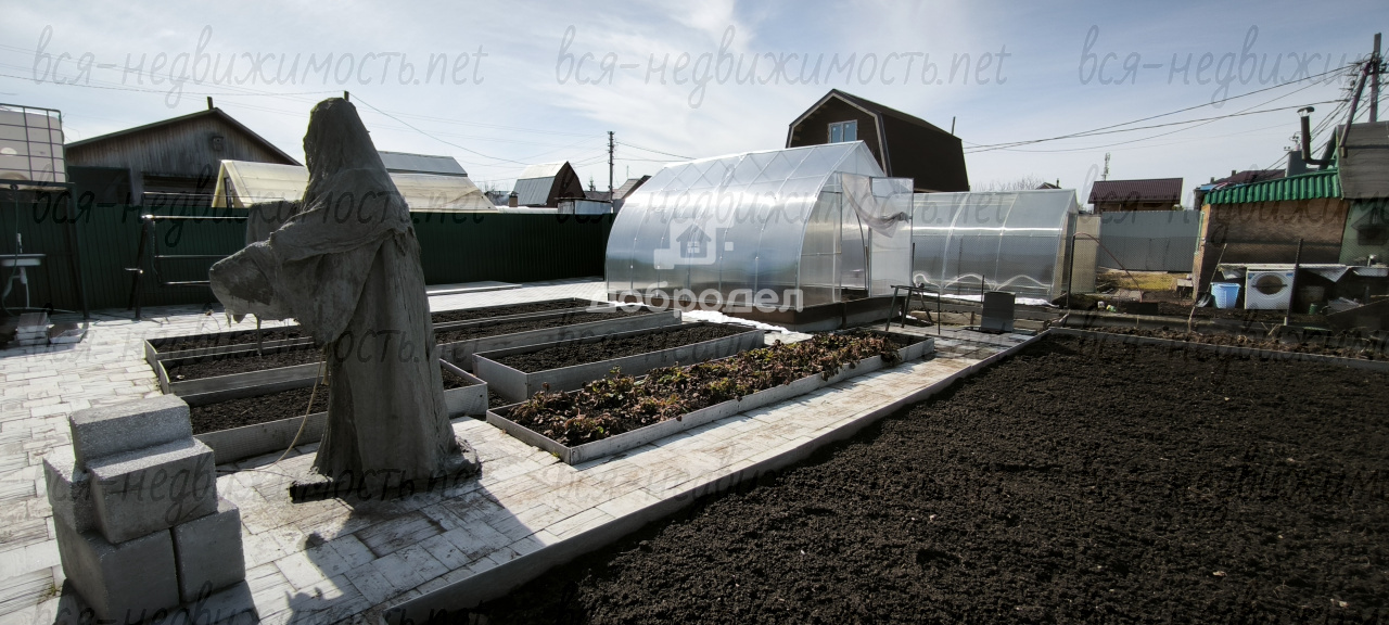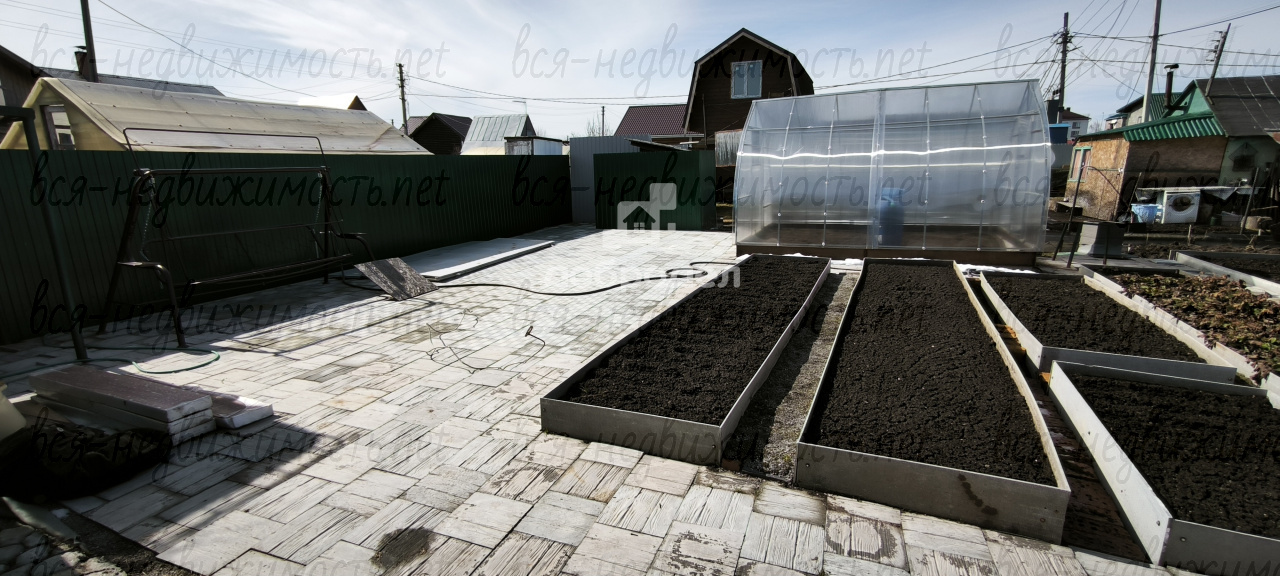 УЧАСТОК: квадратной формы. По всему периметру забор, с 2-х сторон металлический, с 2-х сетка, ворота откатные. Скважина 35 метров сертифицированная. Электричество 220, а в самом саду 380. Грядки 7 штук разработаны, посажена клубника, стоит теплица из поликарбоната, уличный туалет, дорожки из бихатона. Беседка, уличный душ и раковина, качель, железный вагончик для хранения инвентаря вместе с инвентарем все остается.