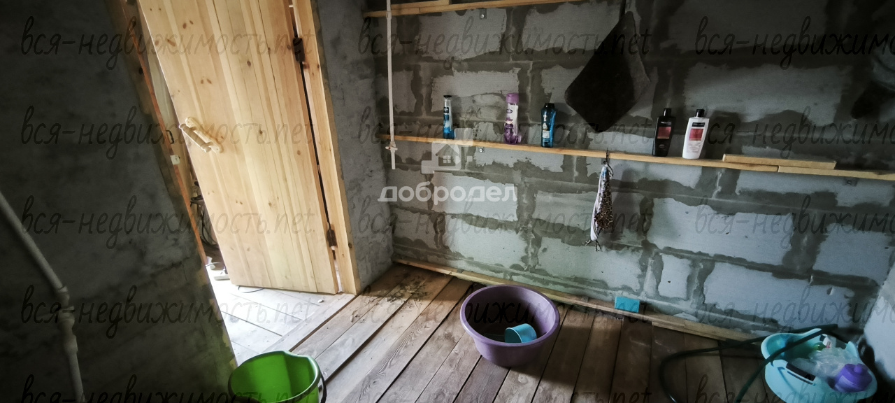 БАНЯ: 4х4 газоблоки, крыша профнастил. Фундамент плита. Моечная, парильная и зона отдыха. Дверь в парную из закаленного стекла. Бойлер на 50 л.