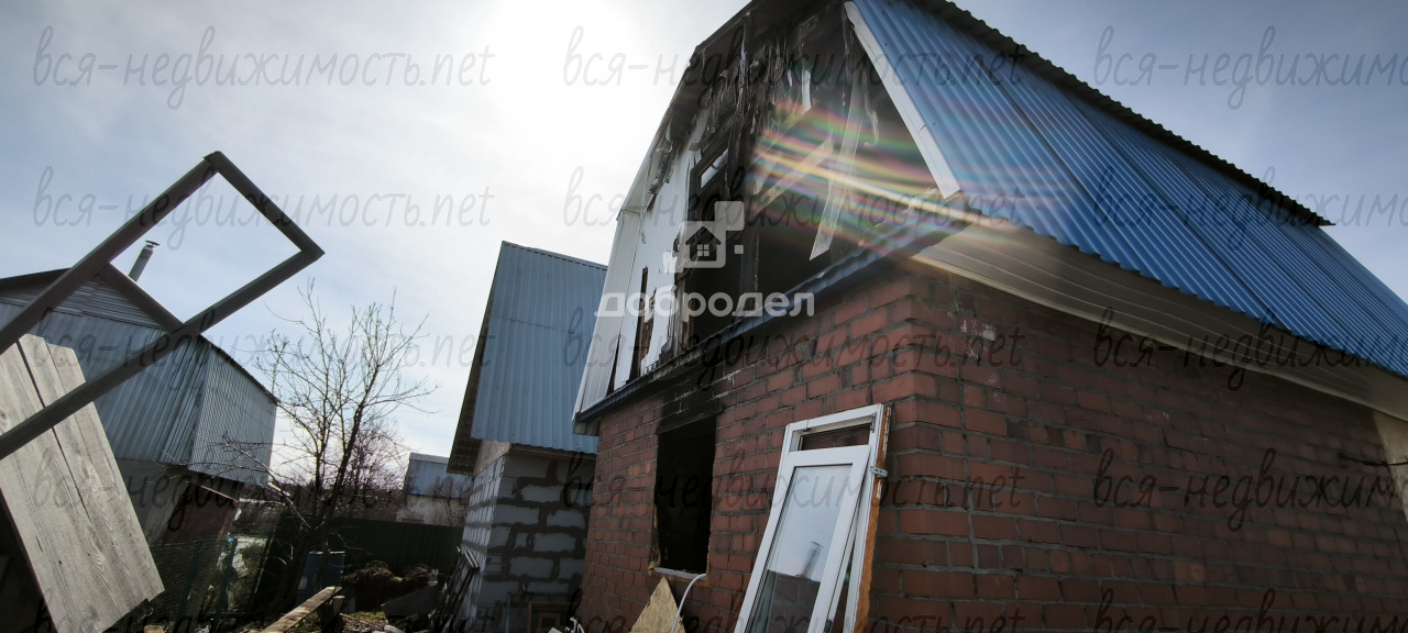 ДОМ: кирпичный, 2 этажа 27,5 м2., крыша профнастил. Фундамент свайный. Печь из кирпича. Зимой дом сгорел внутри из-за замыкания проводки. Снаружи дом целый, но внутри ничего нет, печь целая, стены и крыша тоже.
