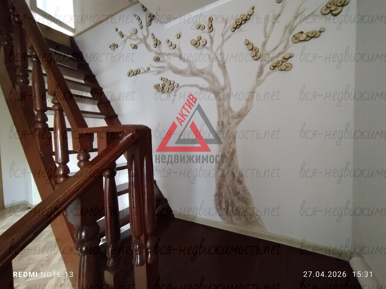 * Лестница из массива дерева (ручная работа) с барельефом дерева и спилами дуба.
