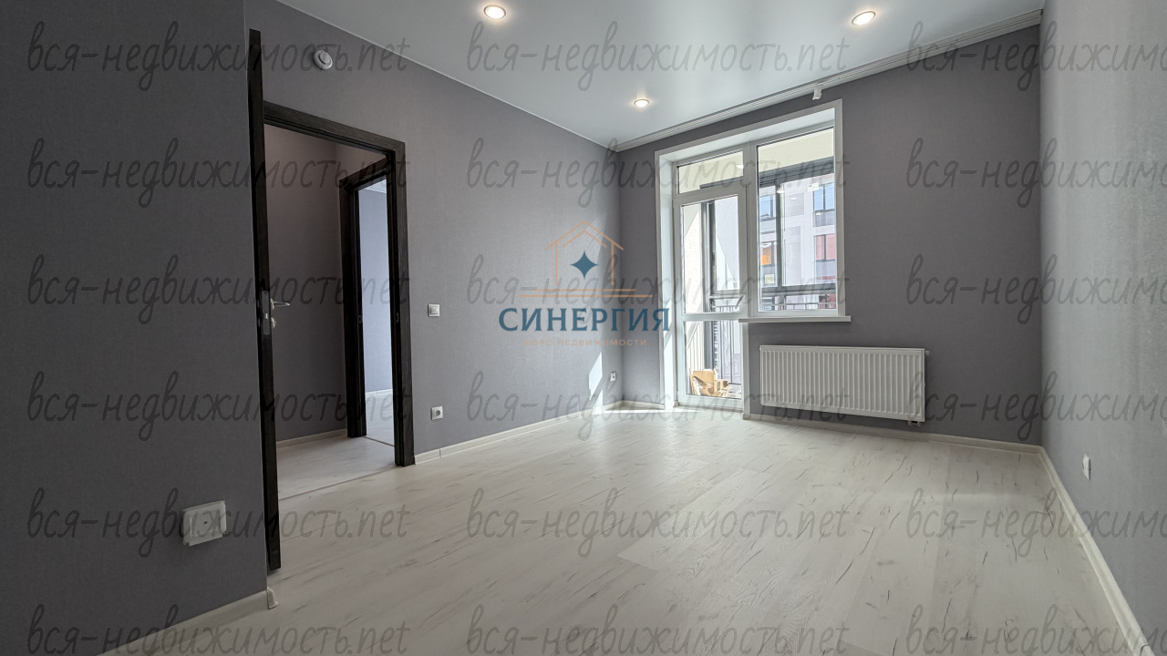 В квартире выполнен современный ремонт в приятных, нейтральных оттенках — можно заехать и жить без дополнительных вложений. Просторная кухня-гостиная станет центром вашего дома, а изолированная спальня обеспечит комфортный отдых. Из кухни есть выход на лоджию — отличное место для утреннего кофе или отдыха.