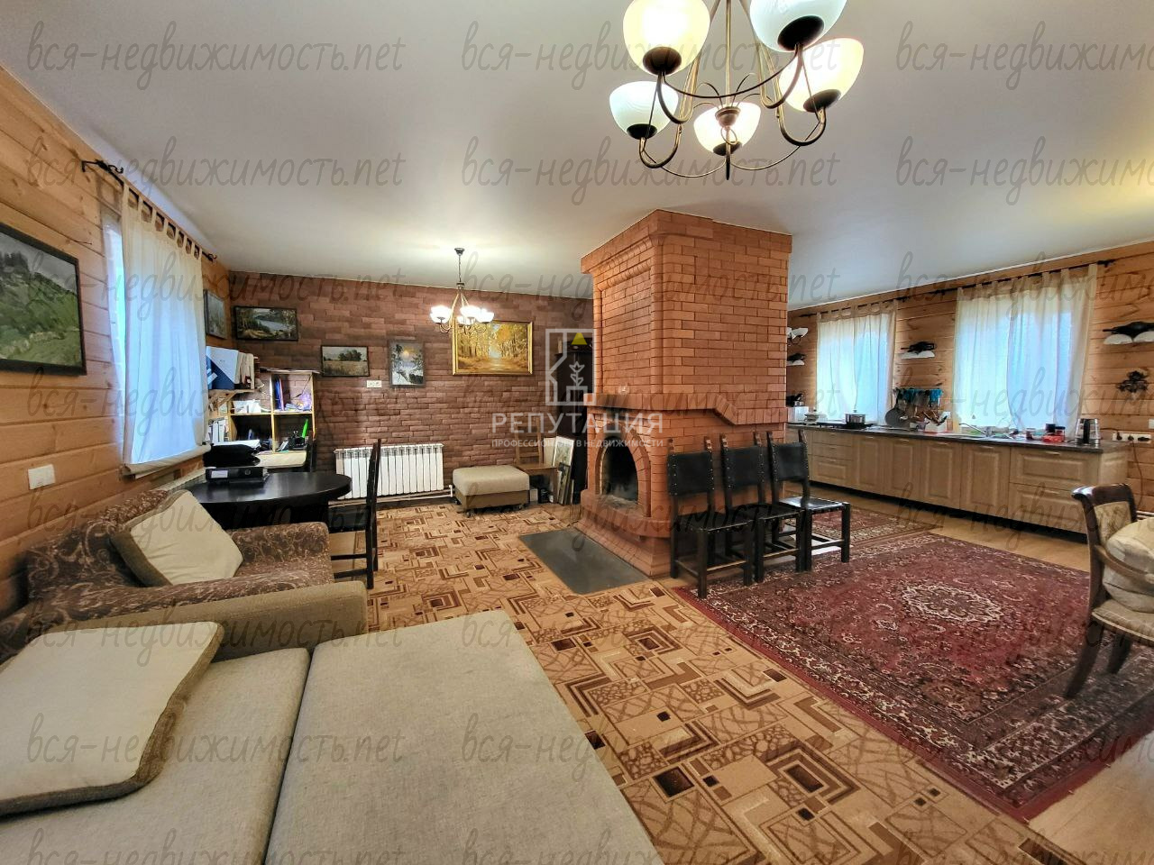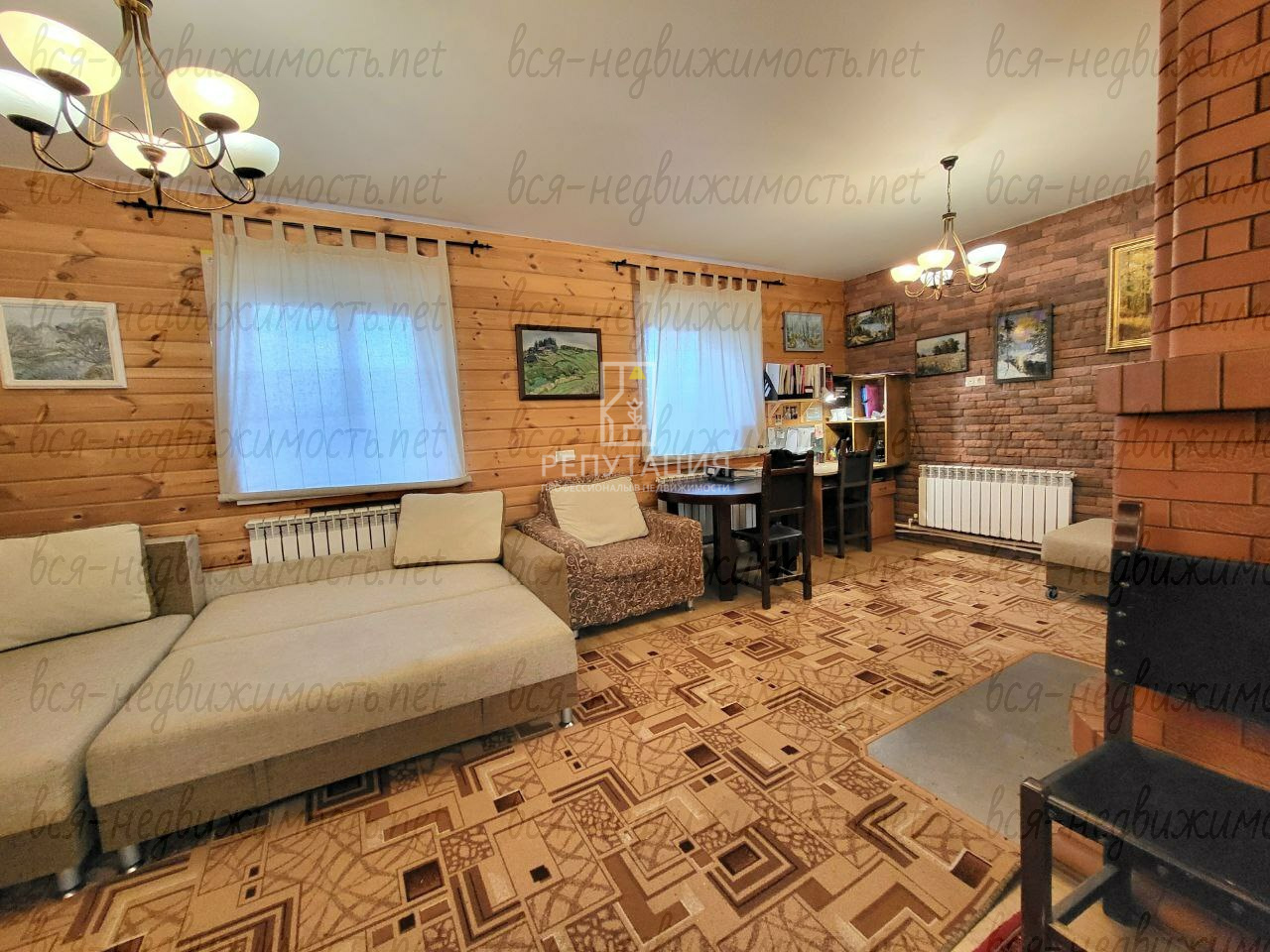 Дом каменный (надёжность и тепло), изнутри обшит деревом (уют загородной жизни).