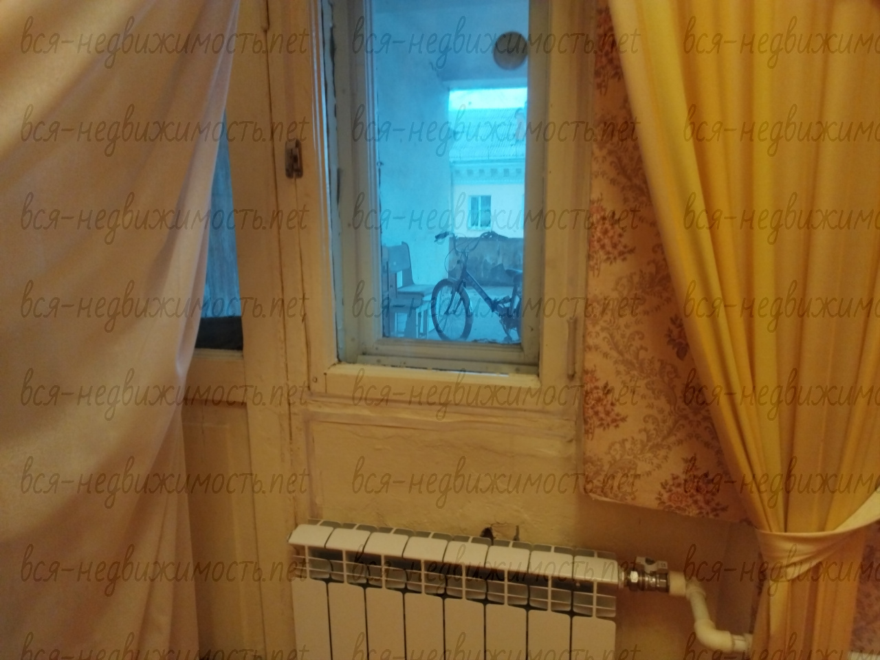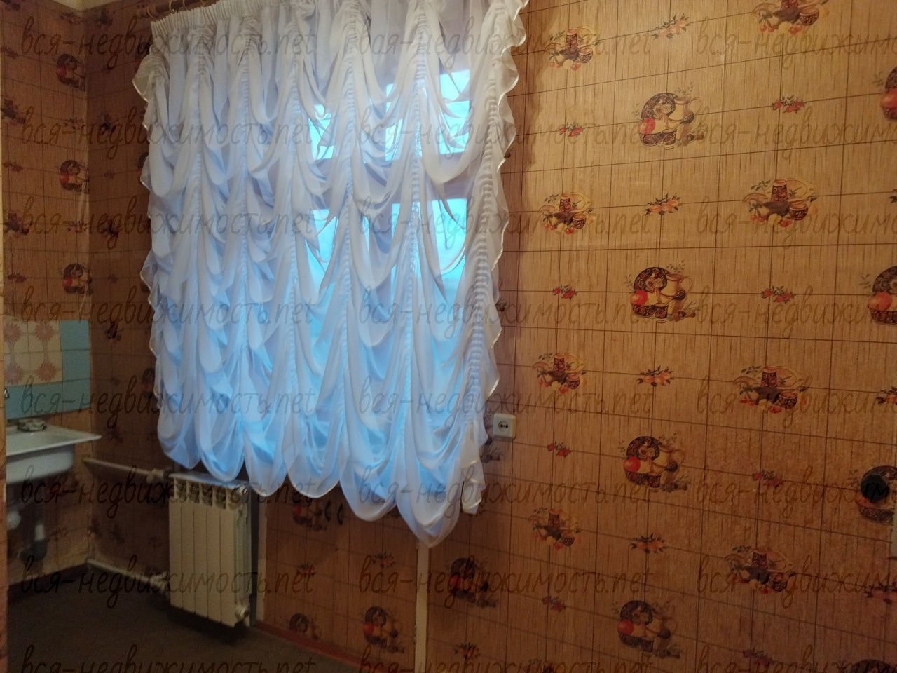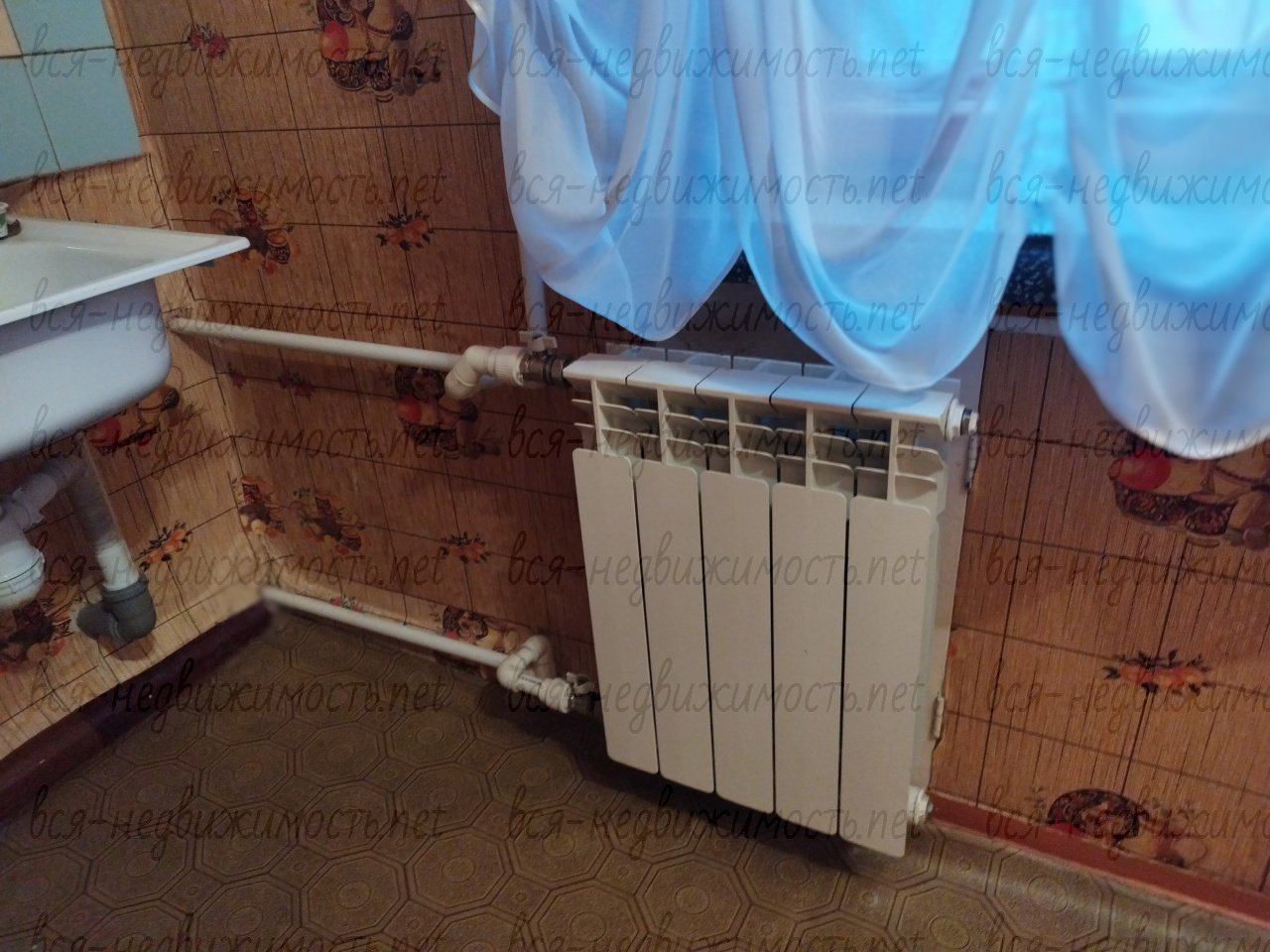 Окна частично пластиковые, радиаторы частично алюминиевые. На кухне в стене встроен холодильник. Занавеси и люстры все остаются.