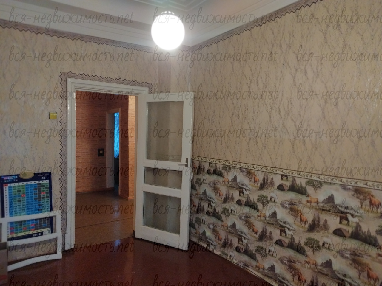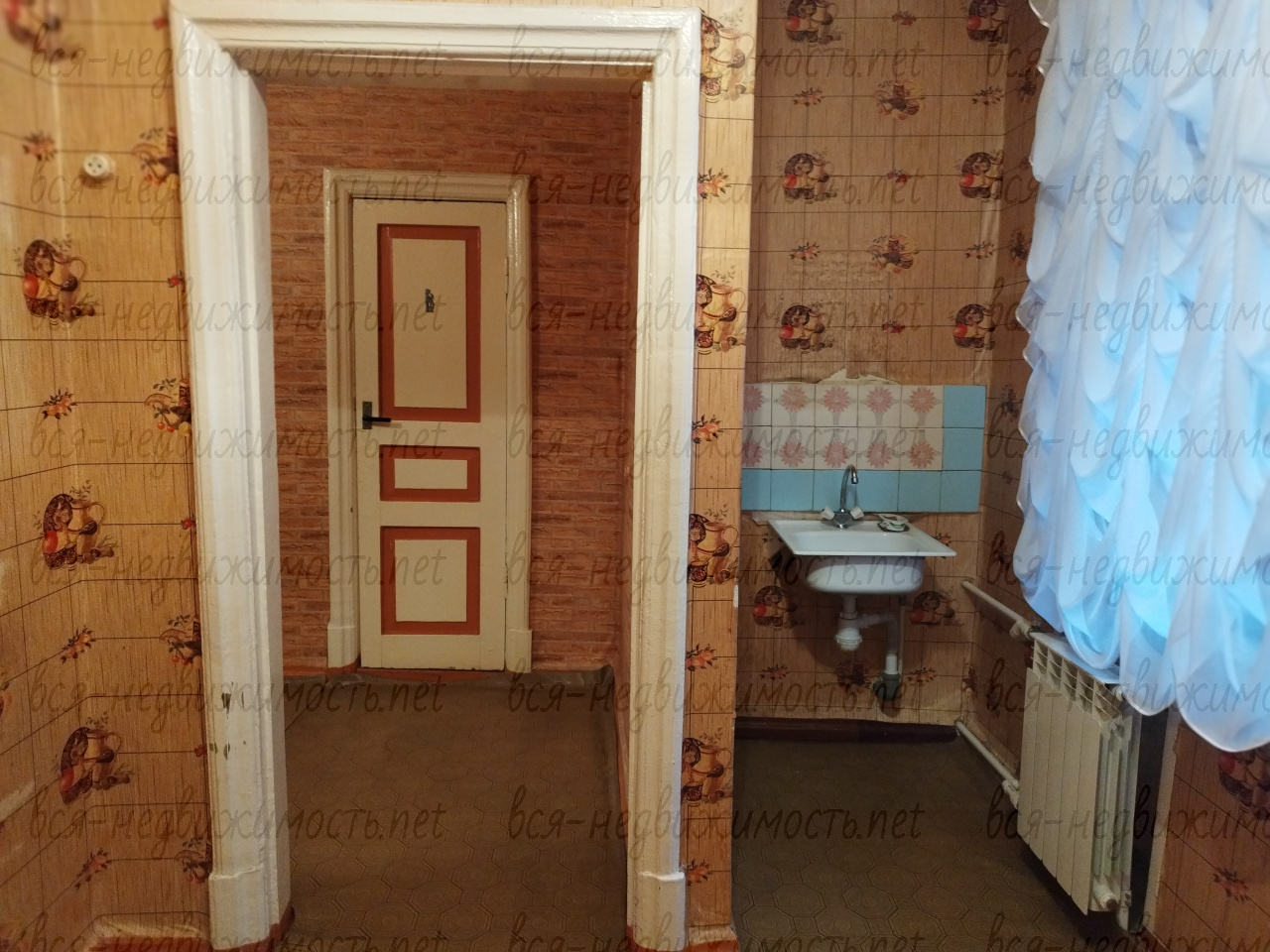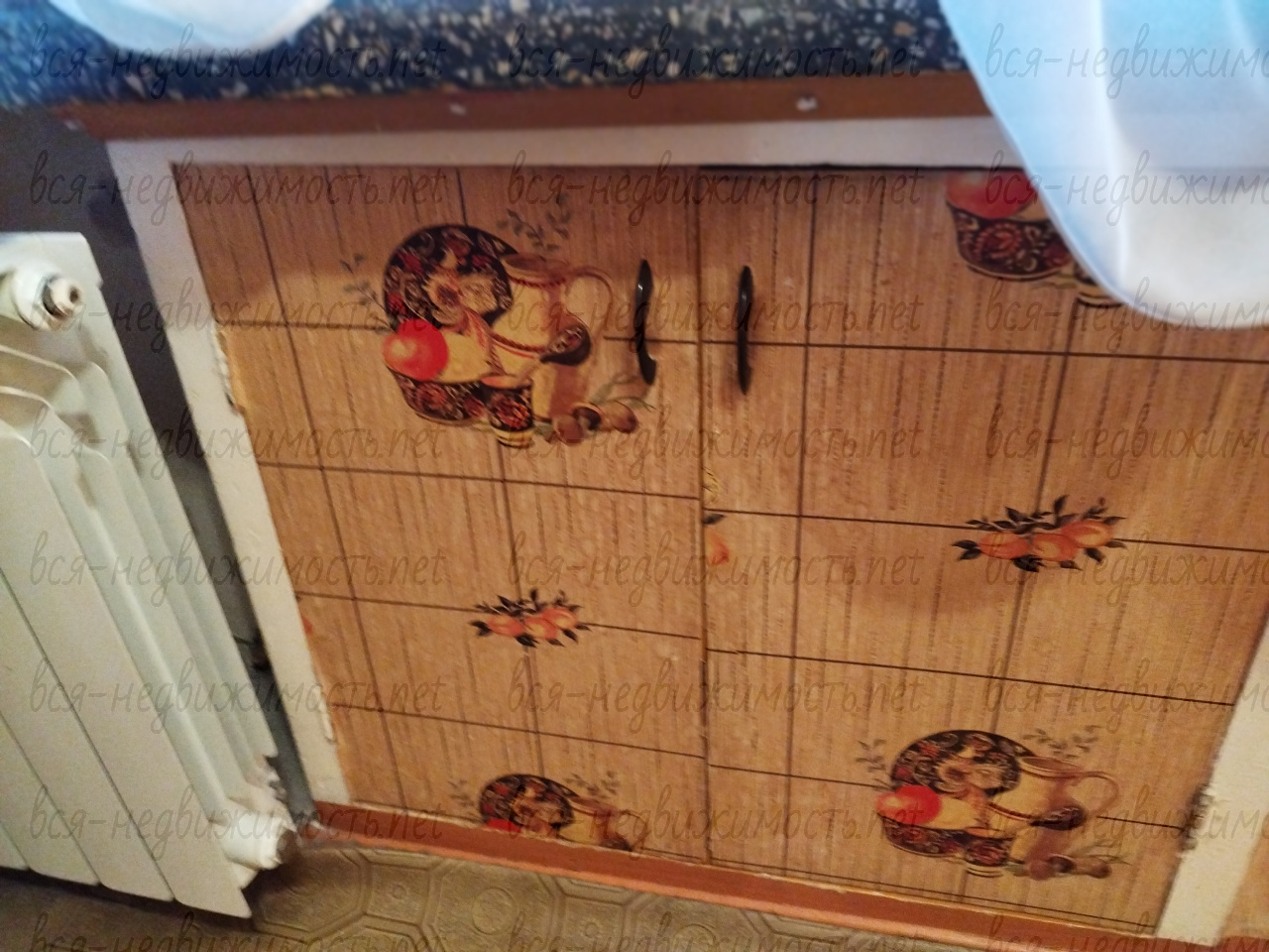 Окна частично пластиковые, радиаторы частично алюминиевые. На кухне в стене встроен холодильник. Занавеси и люстры все остаются.