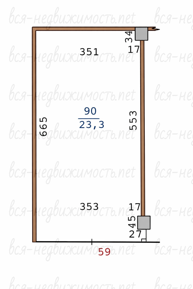 Общая площадь – 23,3 кв.м