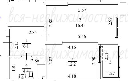- Планировка: Удачная, функциональная планировка с изолированной комнатой. Есть все необходимые зоны: прихожая , совмещенный санузел, кухня 12,2 кв.м., жилая комната 16,4 кв.м..