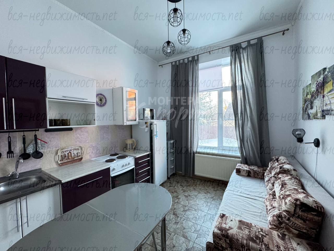 Квартира полностью готова к проживанию, укомплектована мебелью и бытовой техникой.