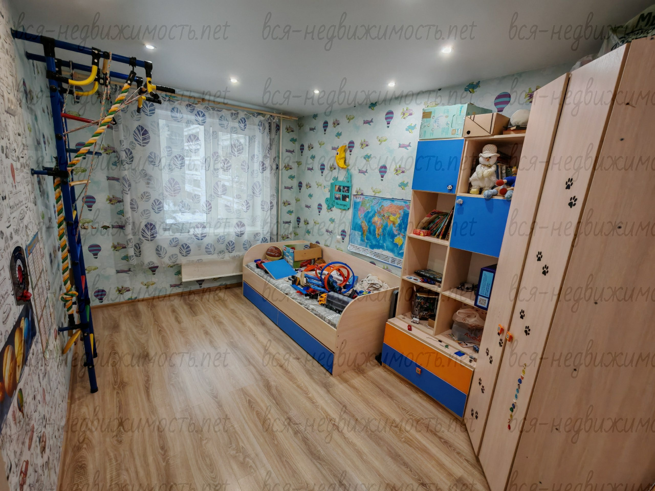 В квартире три спальни, гостиная и кухня. Все окна в квартире пластиковые, остекление лоджии из алюминия, межкомнатные двери поменяны, установлена хорошая входная сейф-дверь, заменена вся электро проводка, стены выровнены, совмещённый санузел в кафеле, теплые полы везде кроме одной комнаты, на полу в прихожей и кухне плитка, на полу в комнатах ламинат, потолки натяжные с разными режимами освещения. В квартире остаются и входят в стоимость: два встроенных шкафа, кухонный гарнитур без бытовой техники, кондиционер в гостиной.