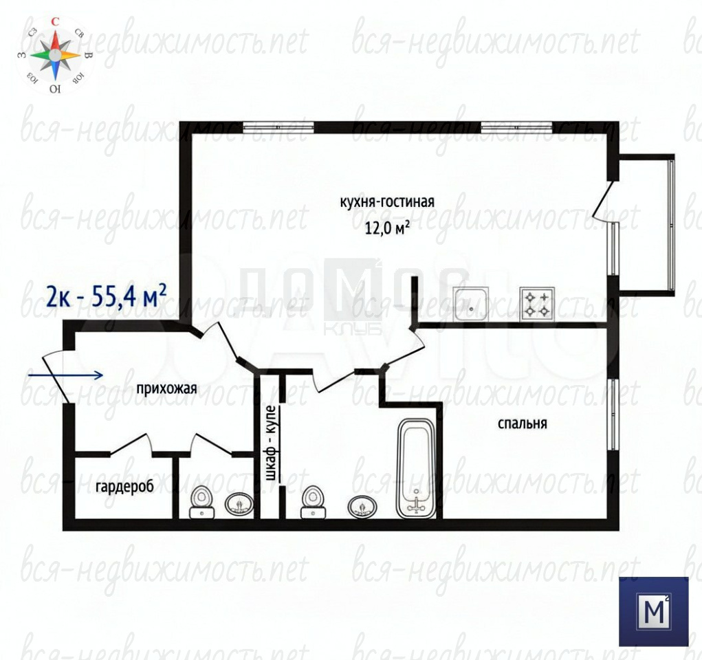 | Площадь кухни: | 12 м2 |