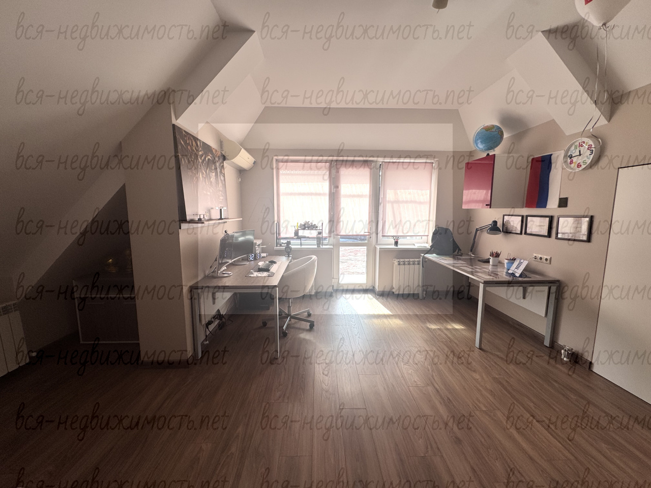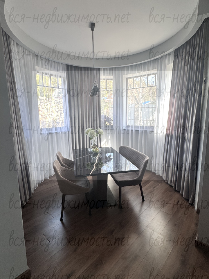 Жилой, двухэтажный дом - 328,6 кв.м., светлый и просторный внутри имеет несколько пространств разделенных между собой: кухня-гостиная, рабочая зона (кабинеты), зона для отдыха, спальни, спортзал, а так же просторный лофт для приема гостей с панорамным видом в сад!