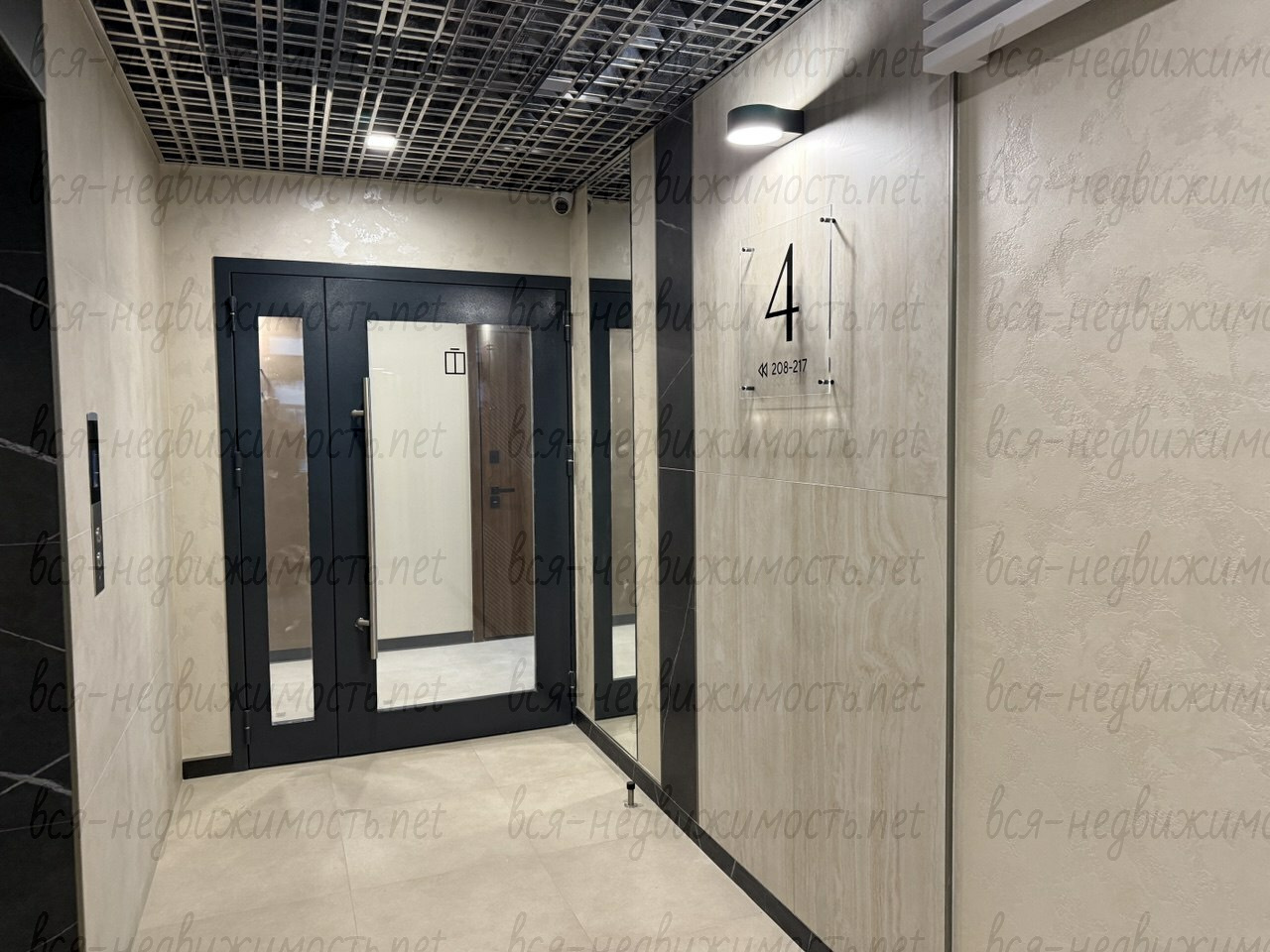 Особенная архитектура. Холл жилого комплекса выполнен в элегантных и минималистичных тонах. Служба мониторинга.