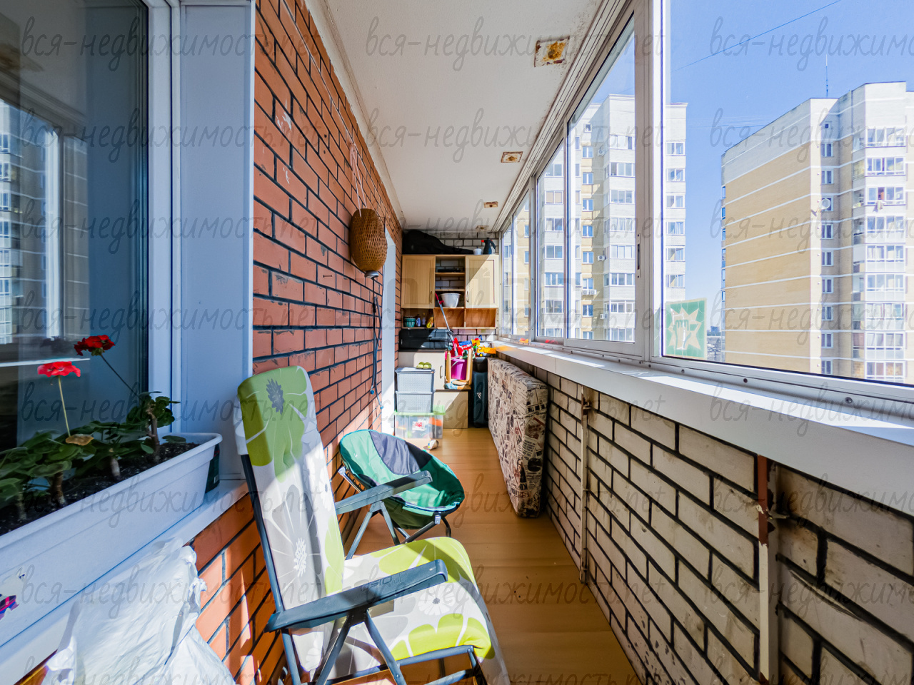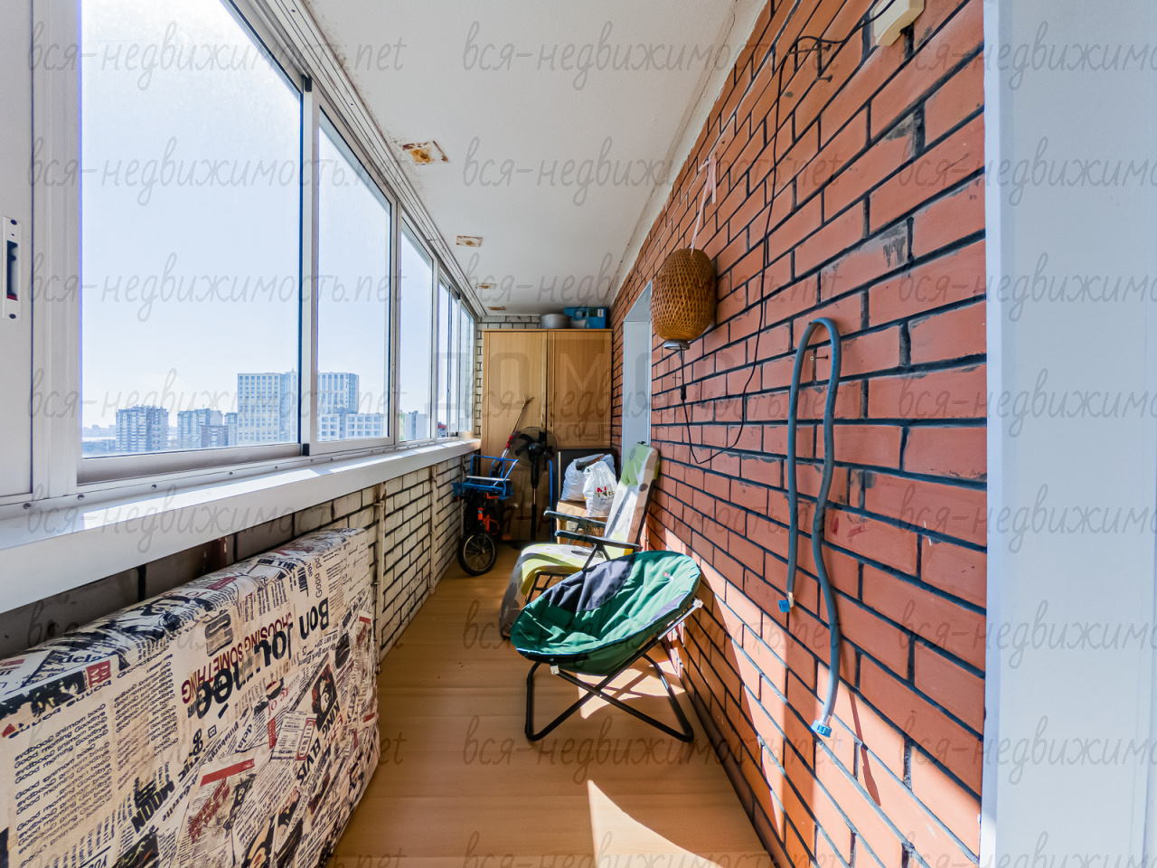 Большая лоджия с окнами на восток. Сейф дверь, окна пластиковые.