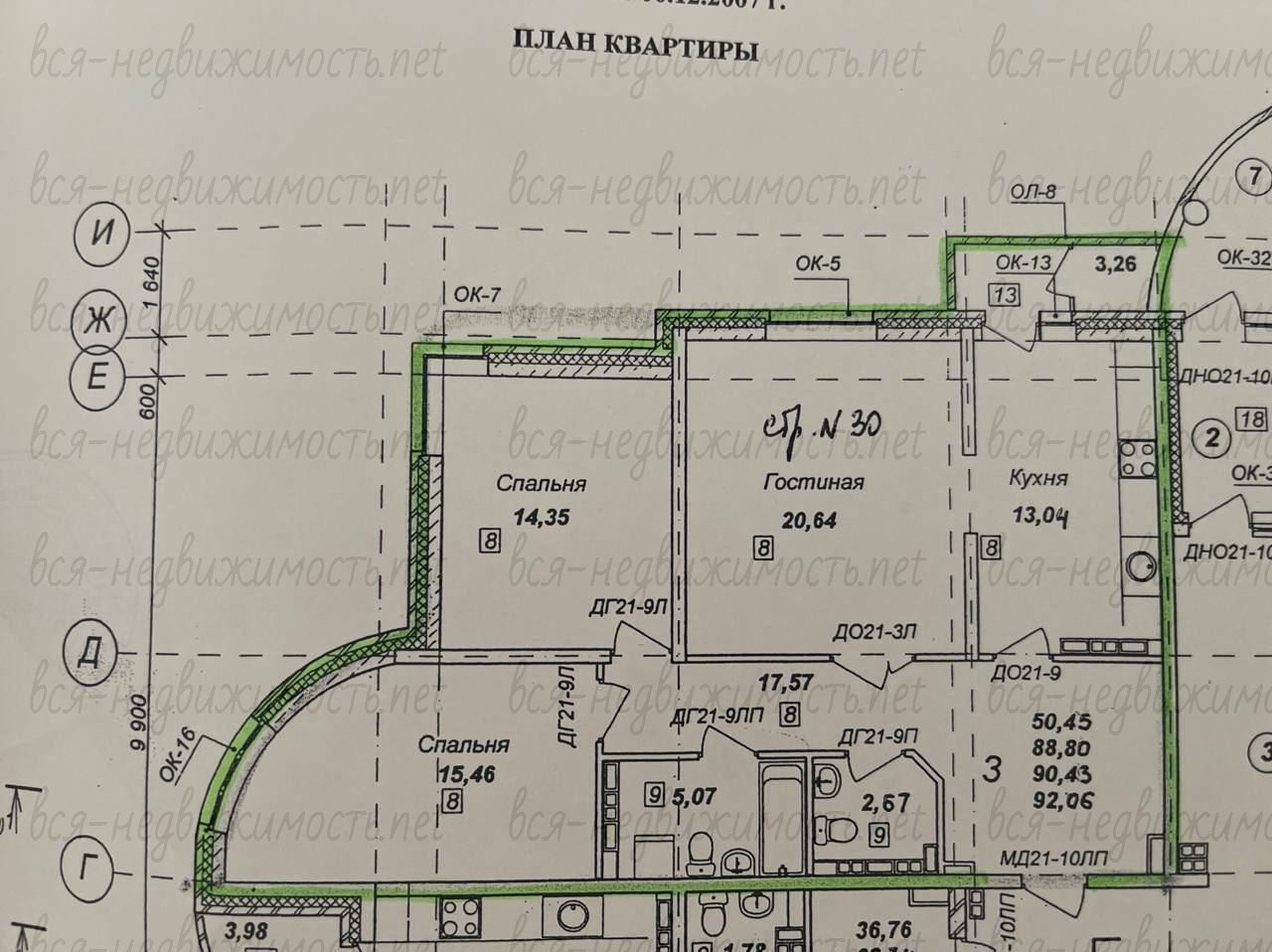 Метраж общий - 88 м2